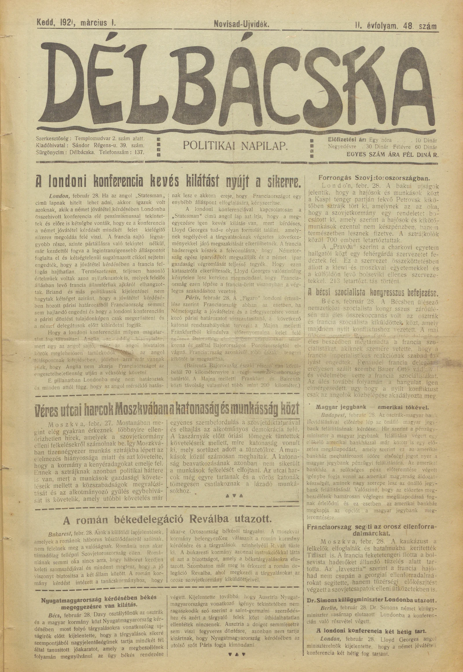 Délbácska, 2. évf. 1921. március 1. 48. sz.