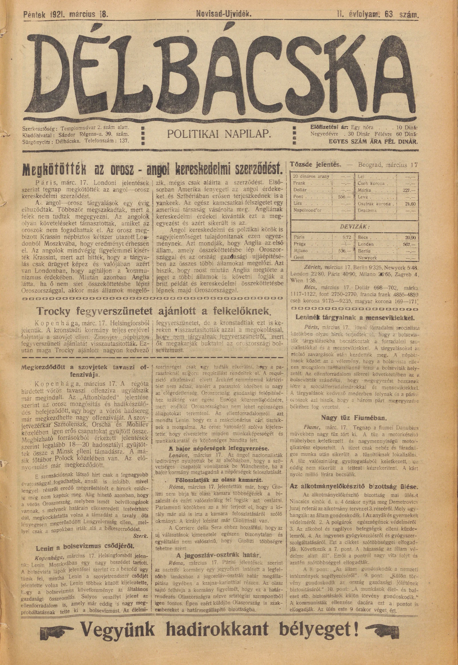 Délbácska, 2. évf. 1921. március 18. 63. sz.