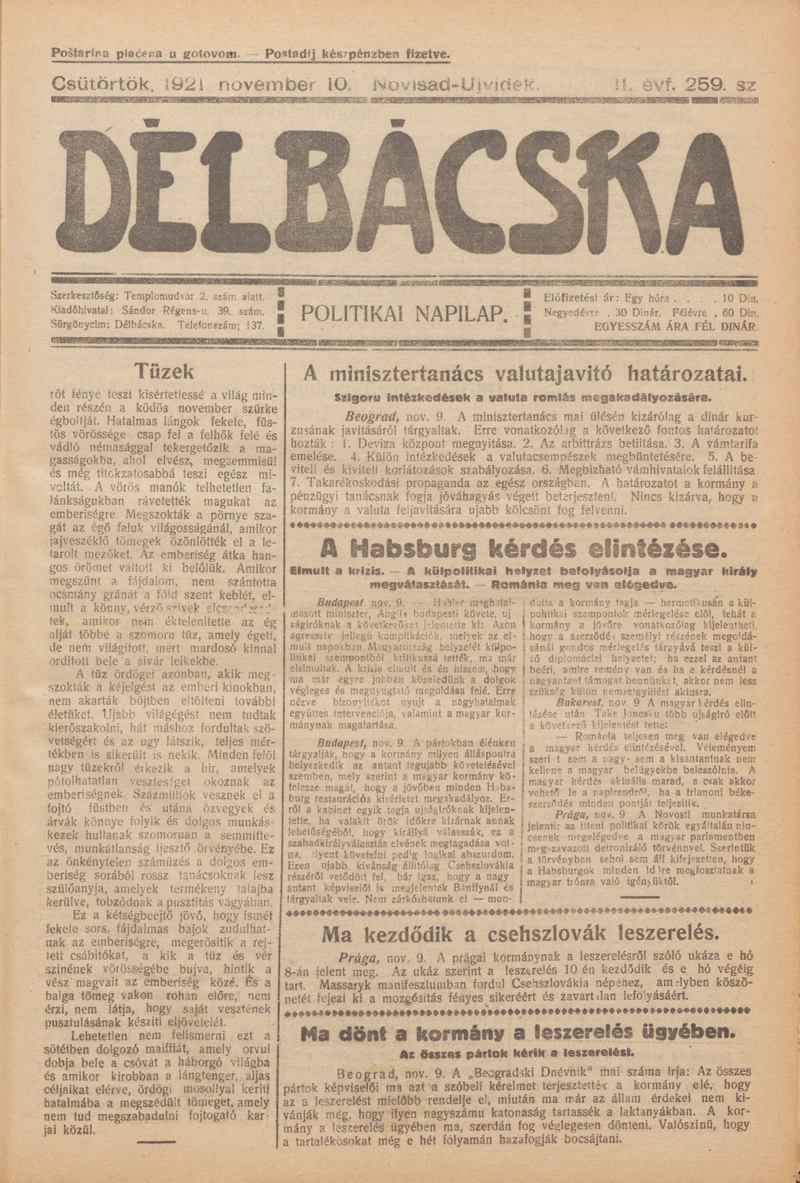 Délbácska, 2. évf. 1921. november 10. 259. sz.