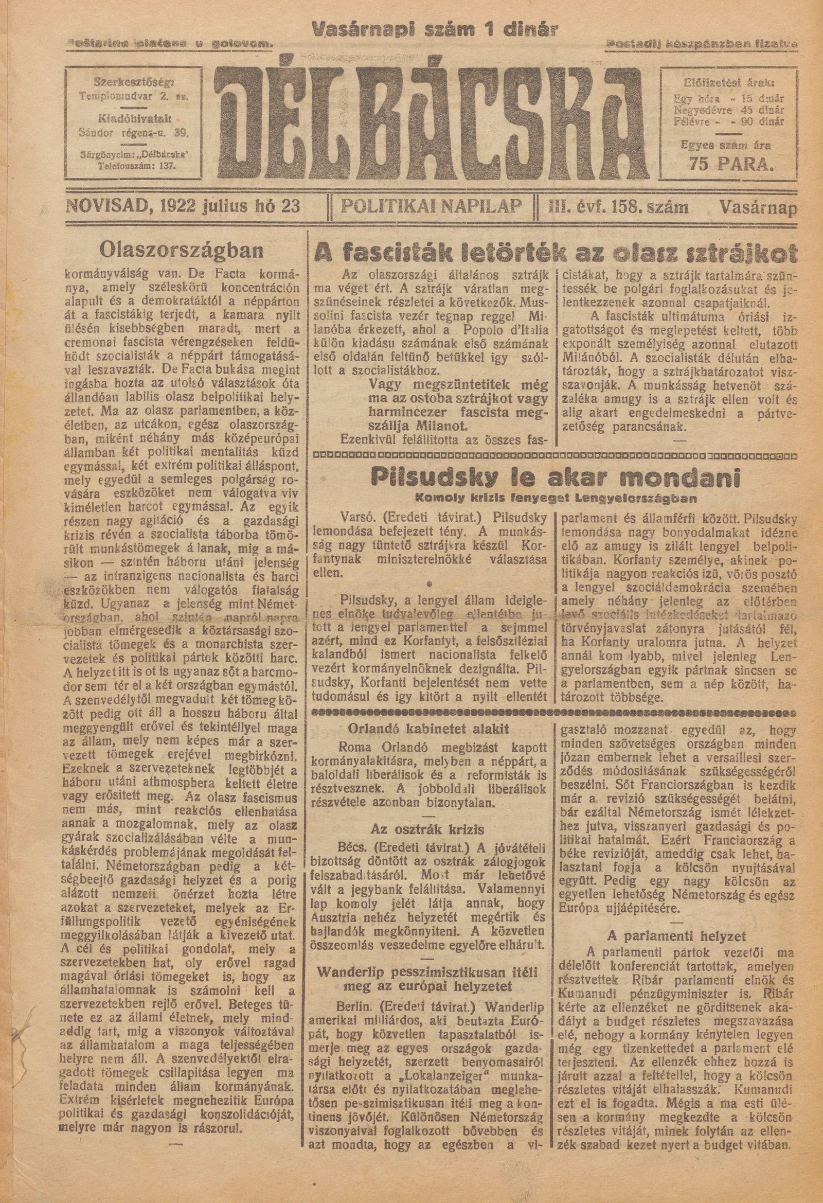 Délbácska, 3. évf. 1922. július 23. 158. sz.
