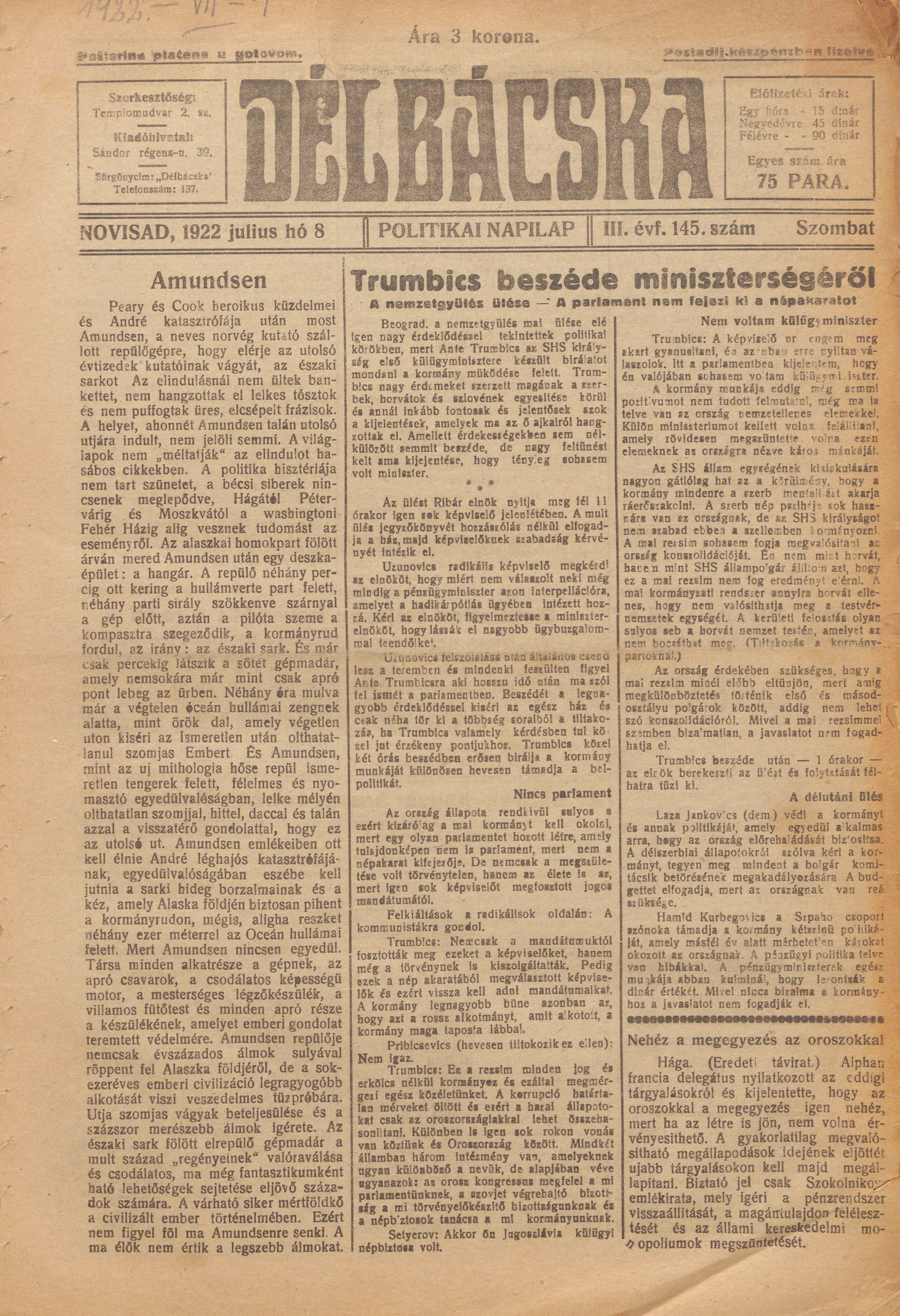 Délbácska, 3. évf. 1922. július 8. 145. sz.