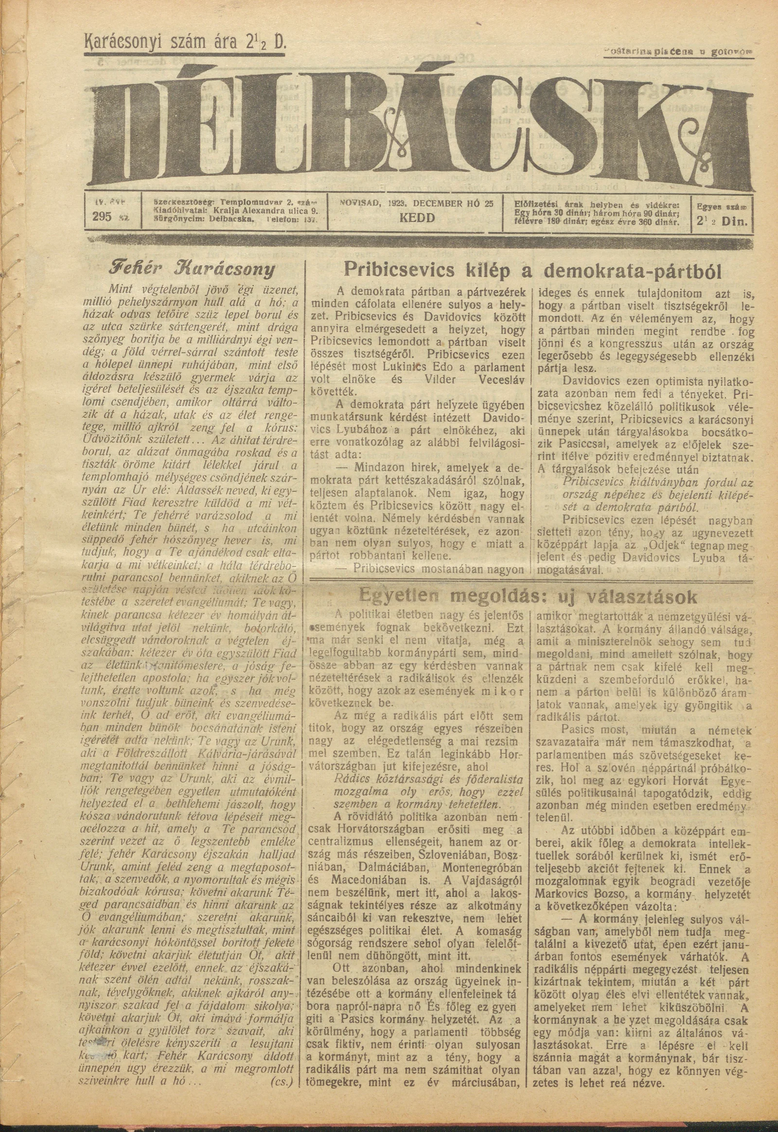 Délbácska, 4. évf. 1923. december 25. 295. sz.