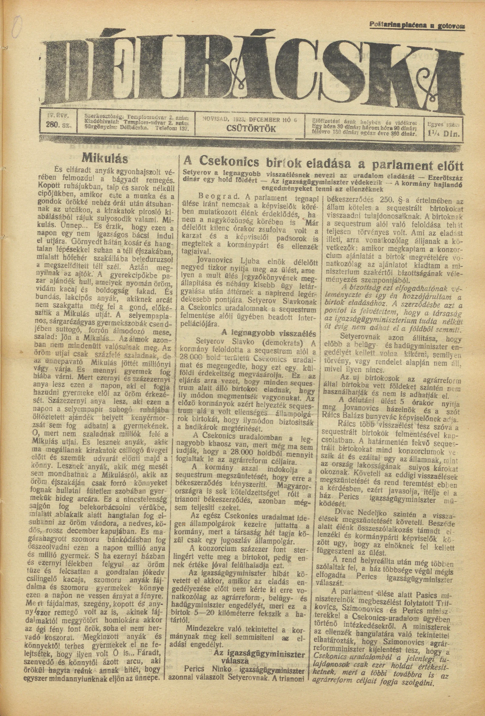 Délbácska, 4. évf. 1923. december 6. 280. sz.
