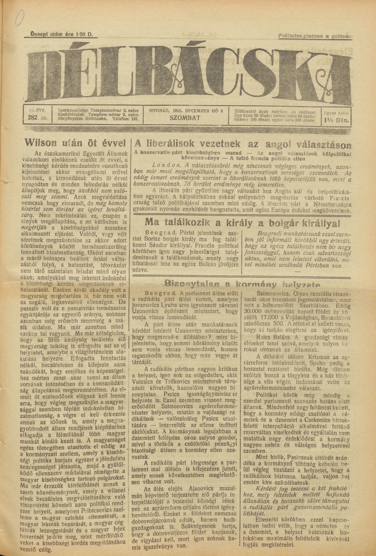 Délbácska, 4. évf. 1923. december 8. 282. sz.