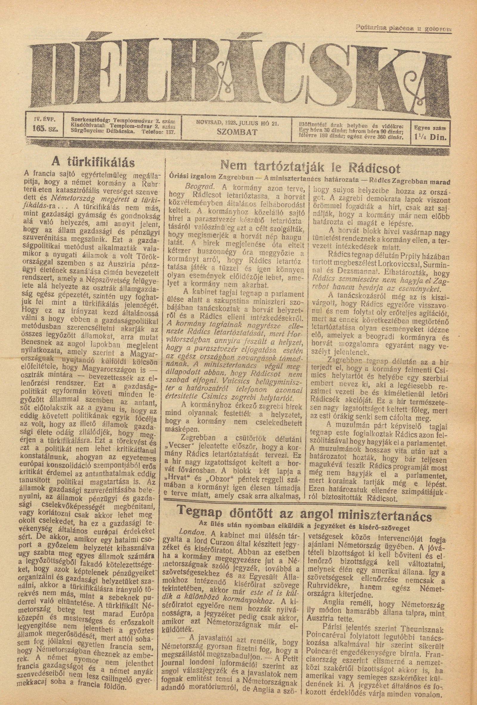 Délbácska, 4. évf. 1923. július 21. 165. sz.