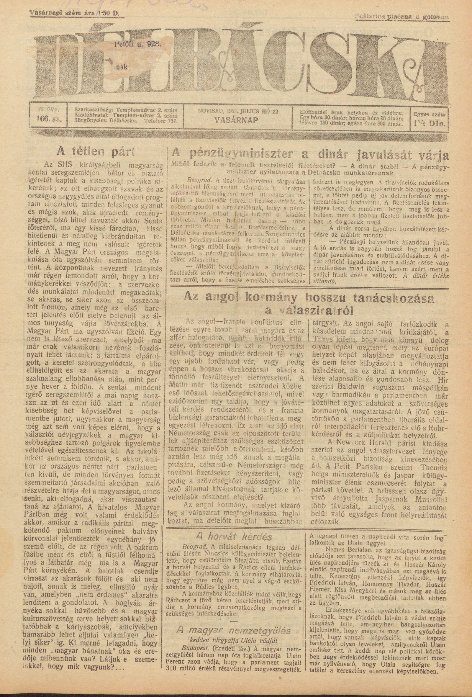 Délbácska, 4. évf. 1923. július 22. 166. sz.