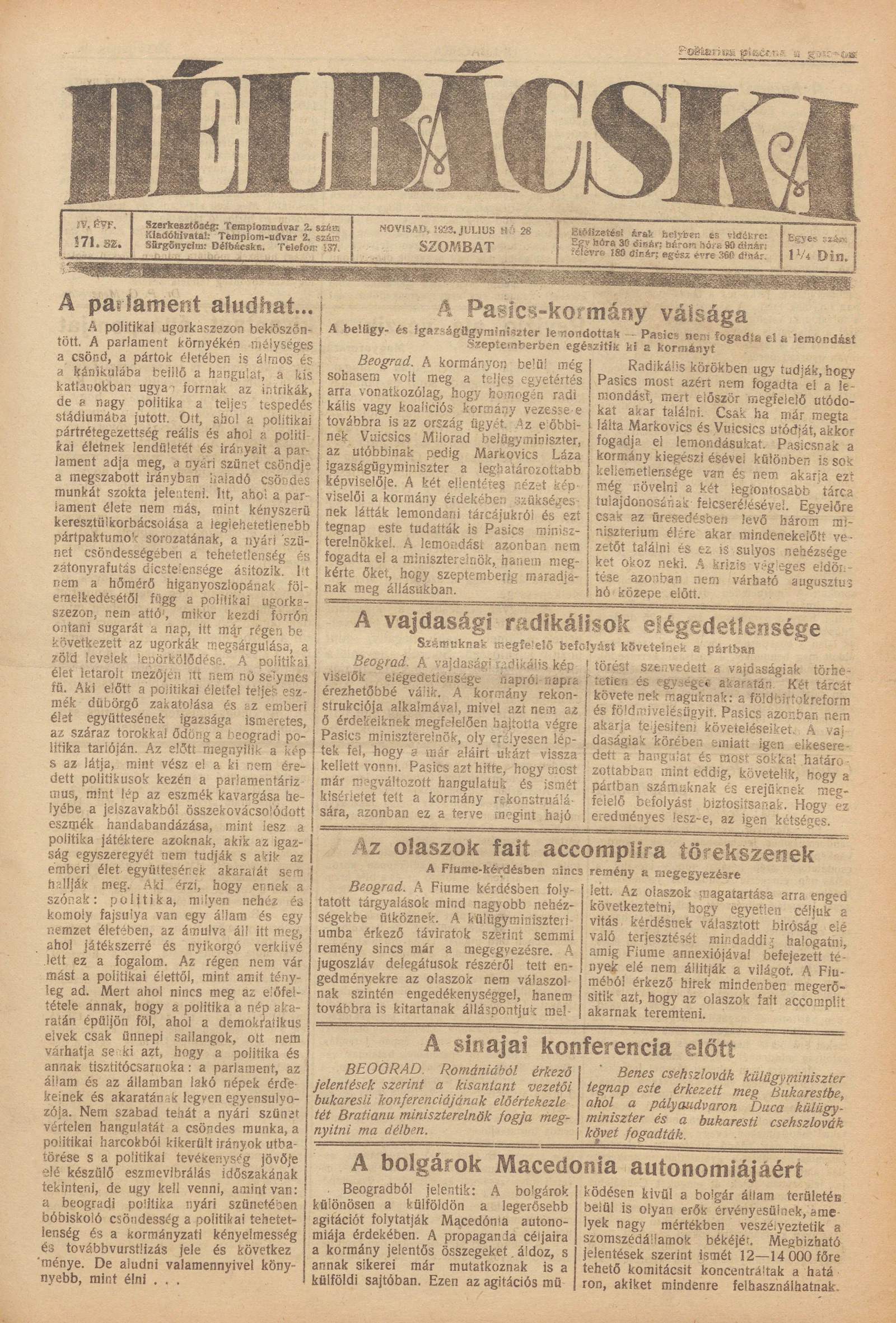 Délbácska, 4. évf. 1923. július 28. 171. sz.