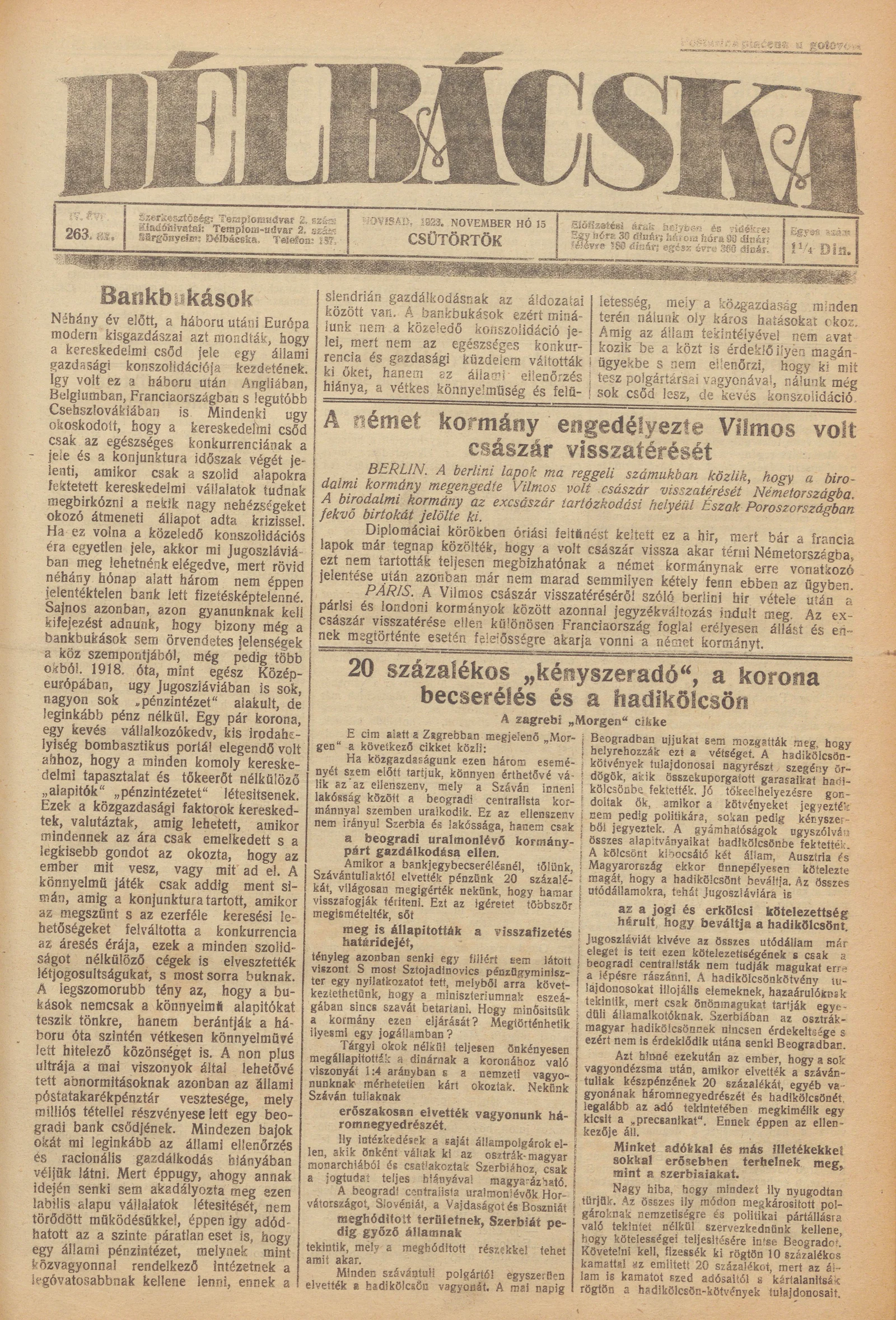 Délbácska, 4. évf. 1923. november 15. 263. sz.