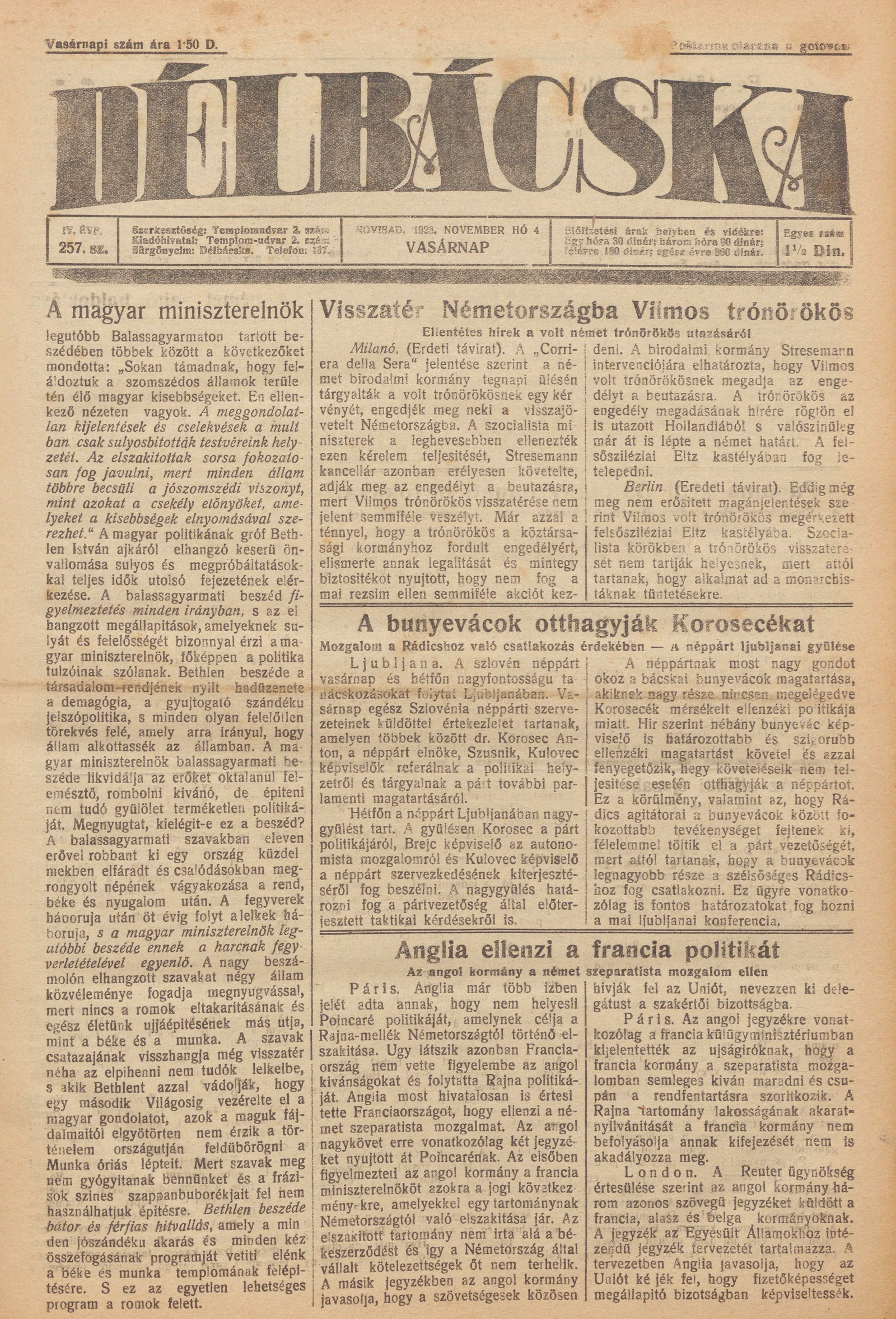 Délbácska, 4. évf. 1923. november 6. 255. sz.