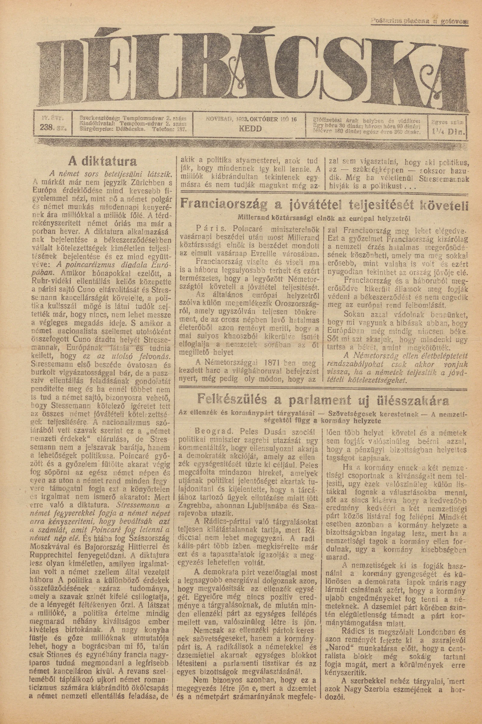 Délbácska, 4. évf. 1923. október 16. 238. sz.