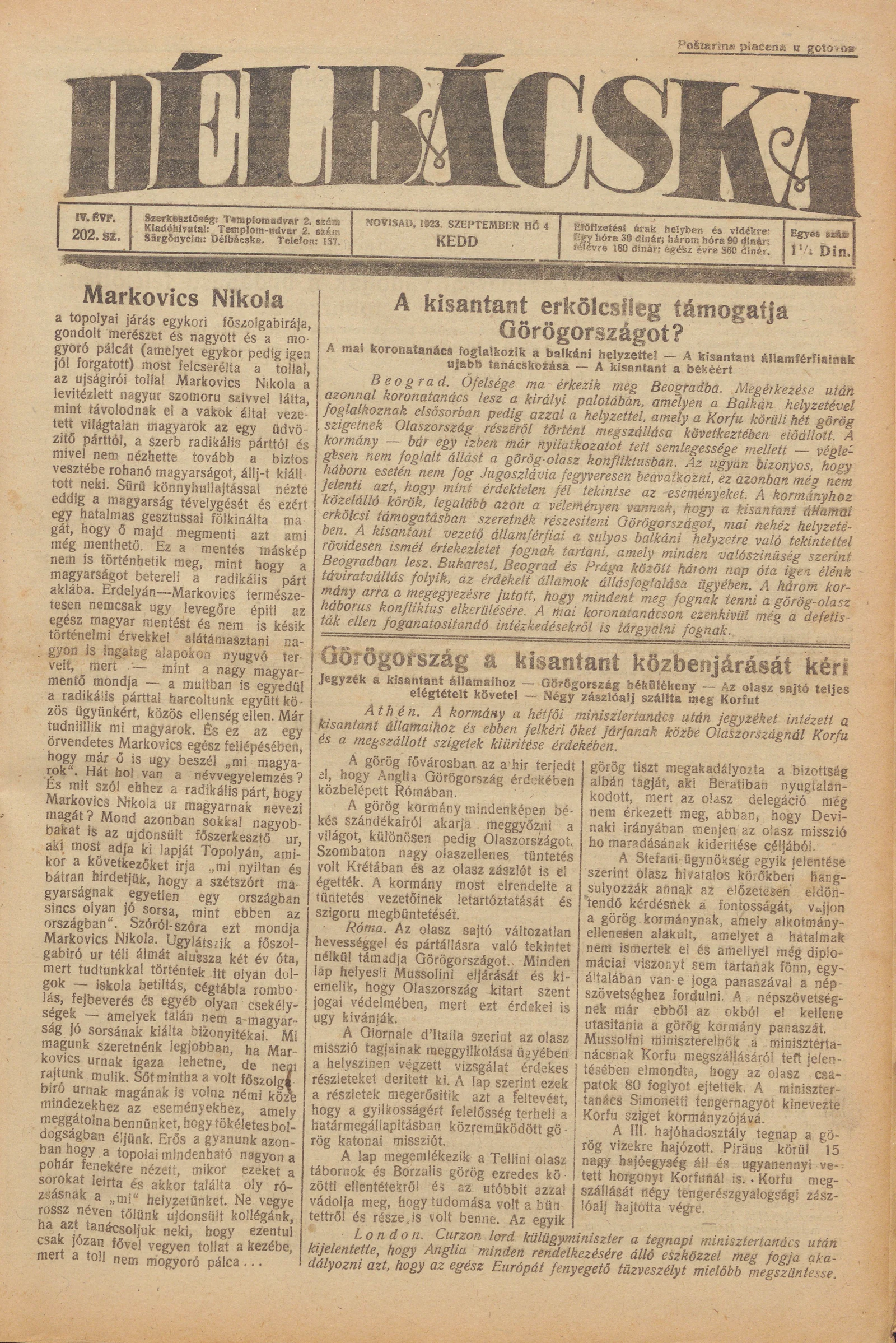 Délbácska, 4. évf. 1923. szeptember 4. 202. sz.