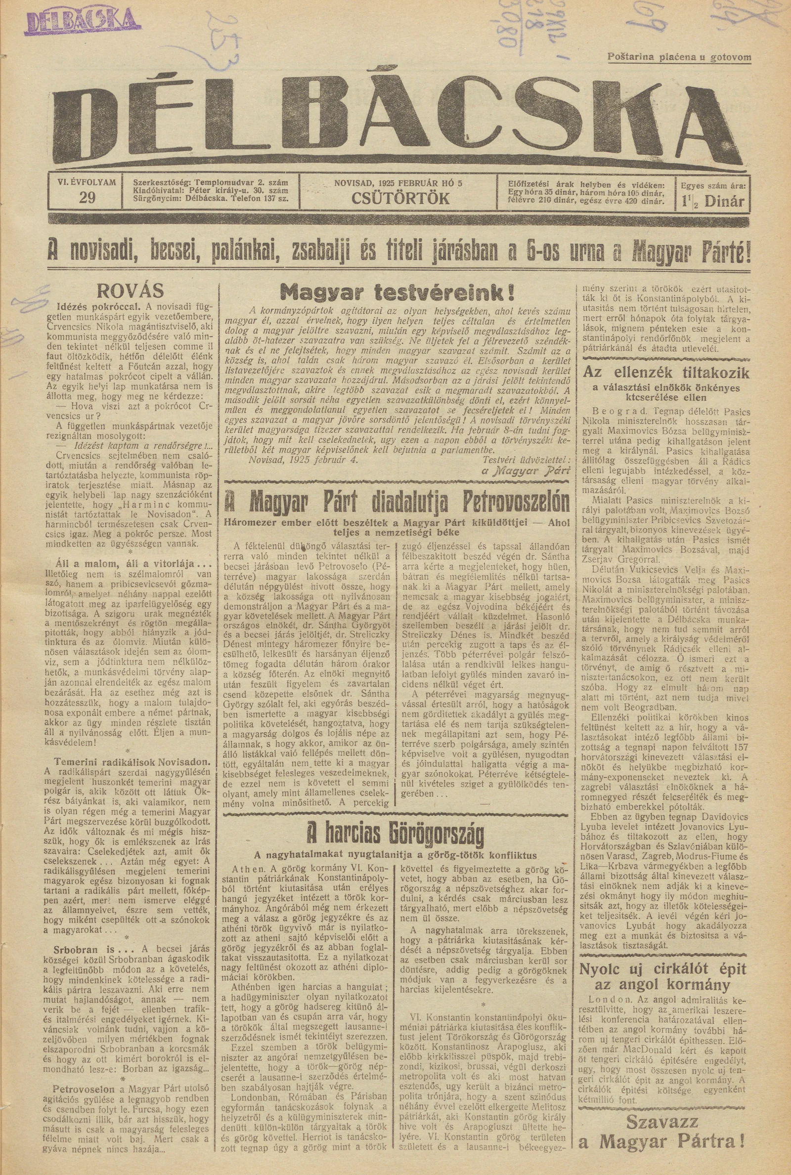 Délbácska, 4. évf. 1925. február 5. 29. sz.