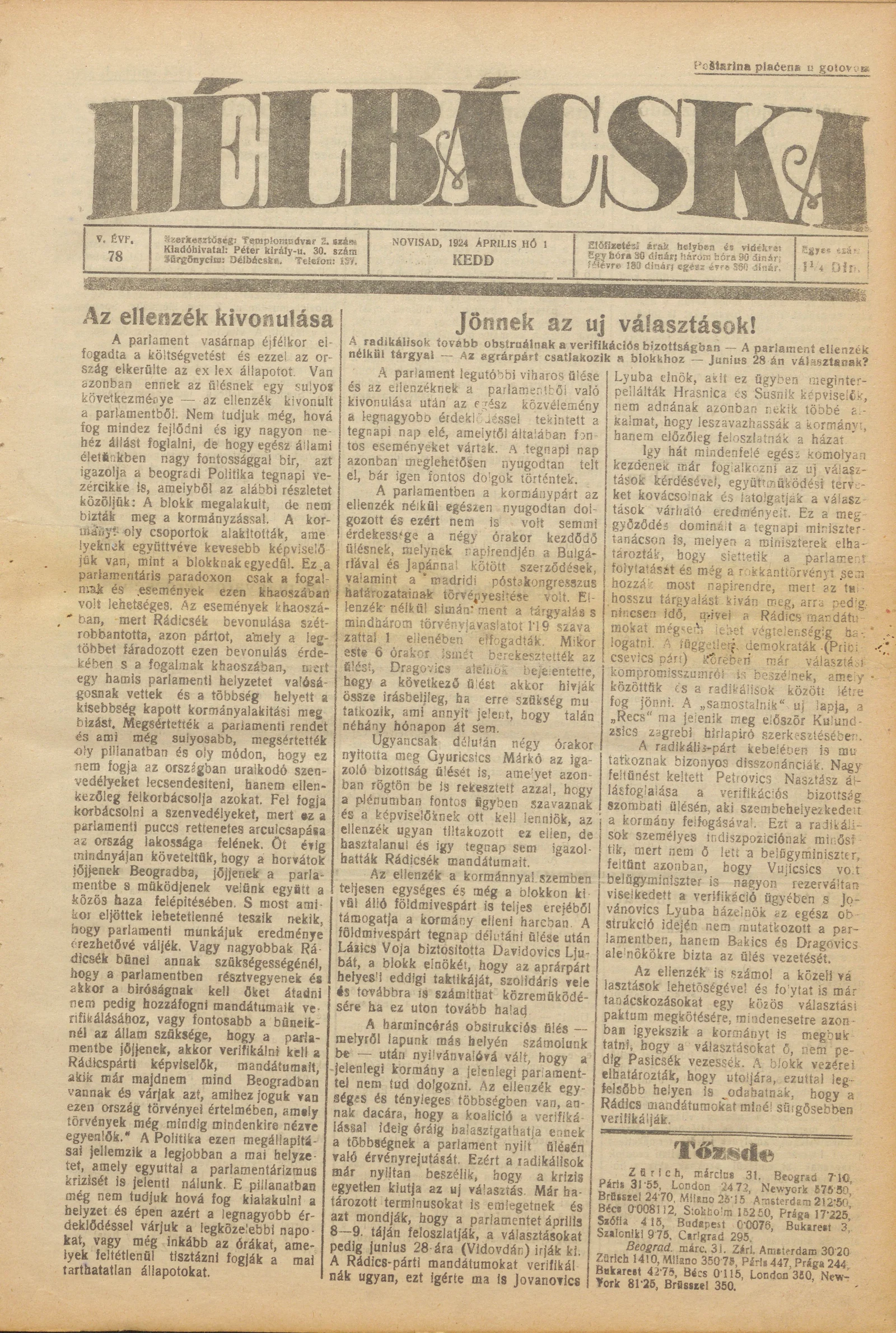 Délbácska, 5. évf. 1924. április 1. 78. sz.