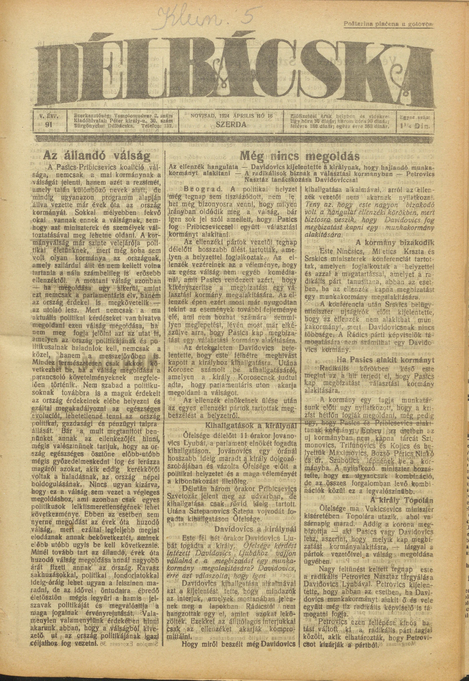 Délbácska, 5. évf. 1924. április 16. 91. sz.