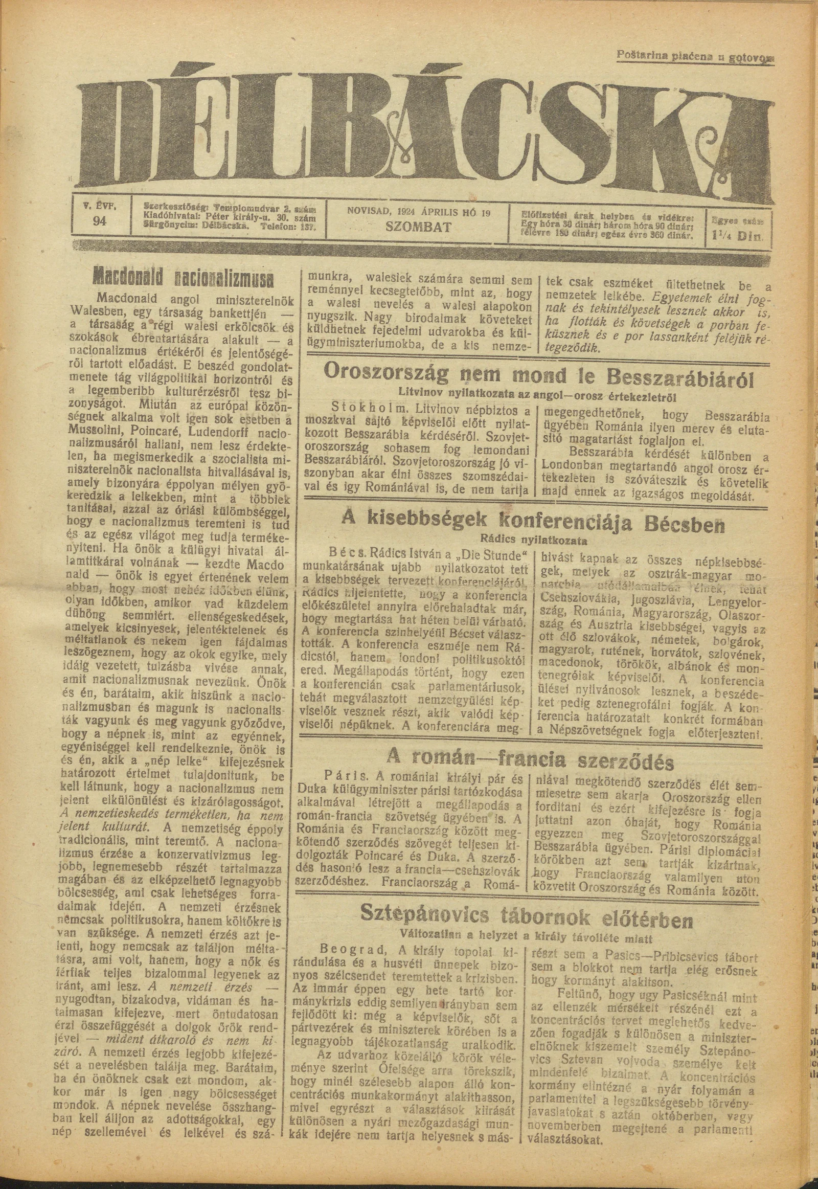 Délbácska, 5. évf. 1924. április 19. 94. sz.