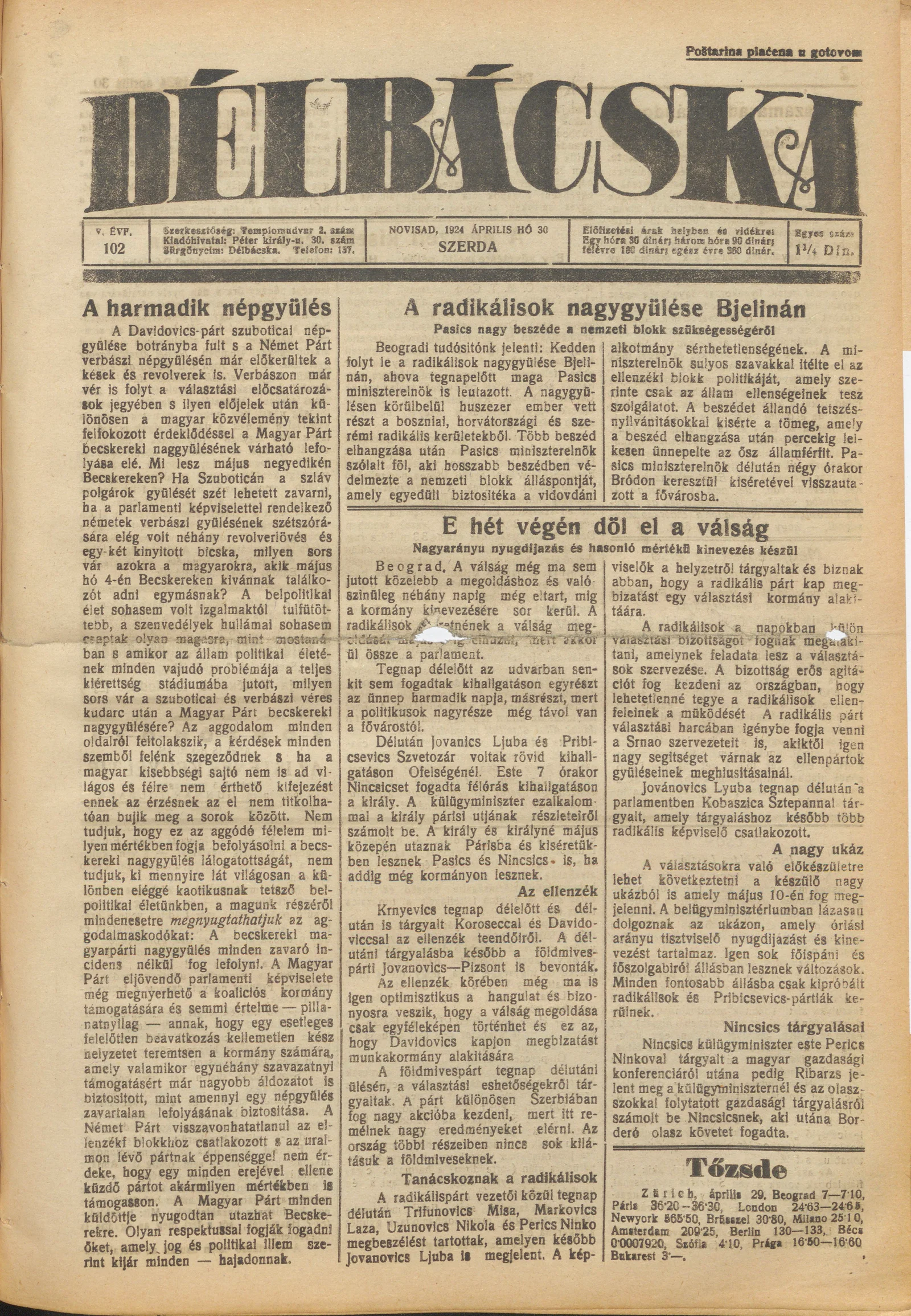 Délbácska, 5. évf. 1924. április 30. 102. sz.