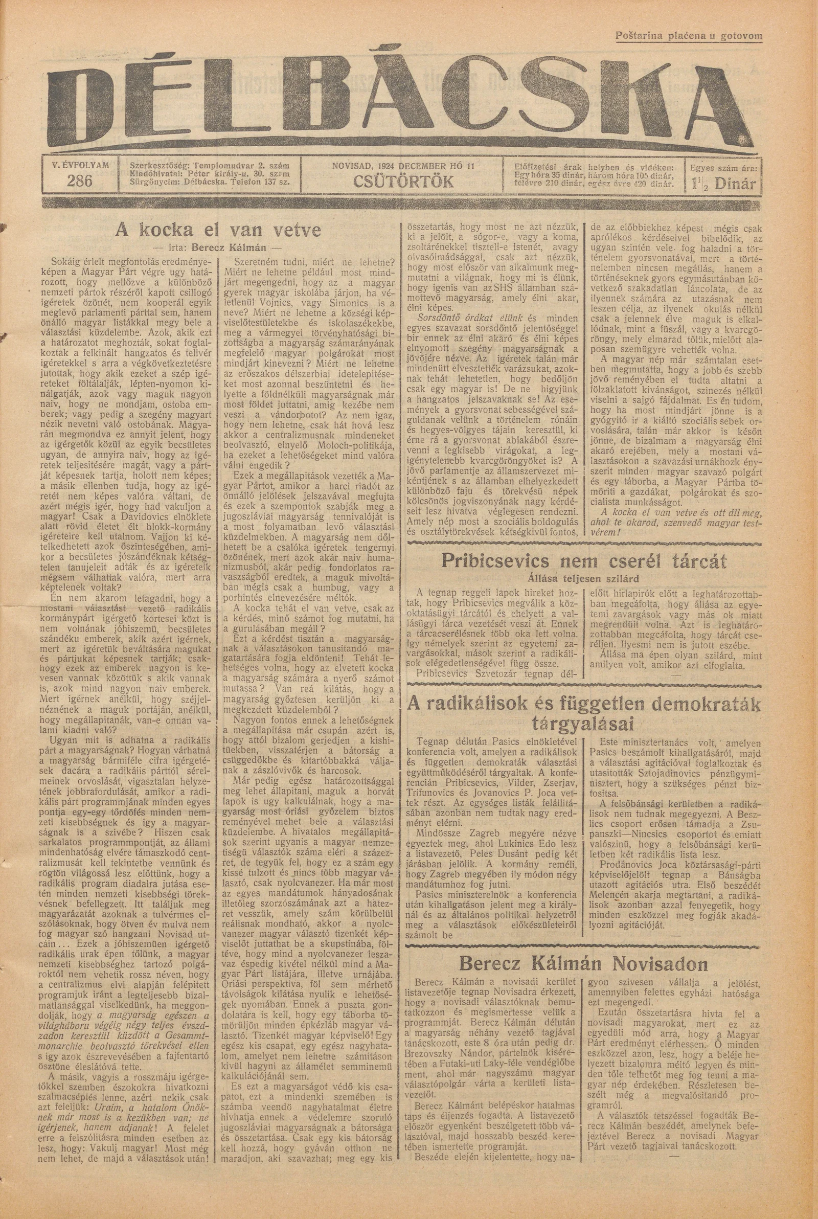 Délbácska, 5. évf. 1924. december 11. 286. sz.