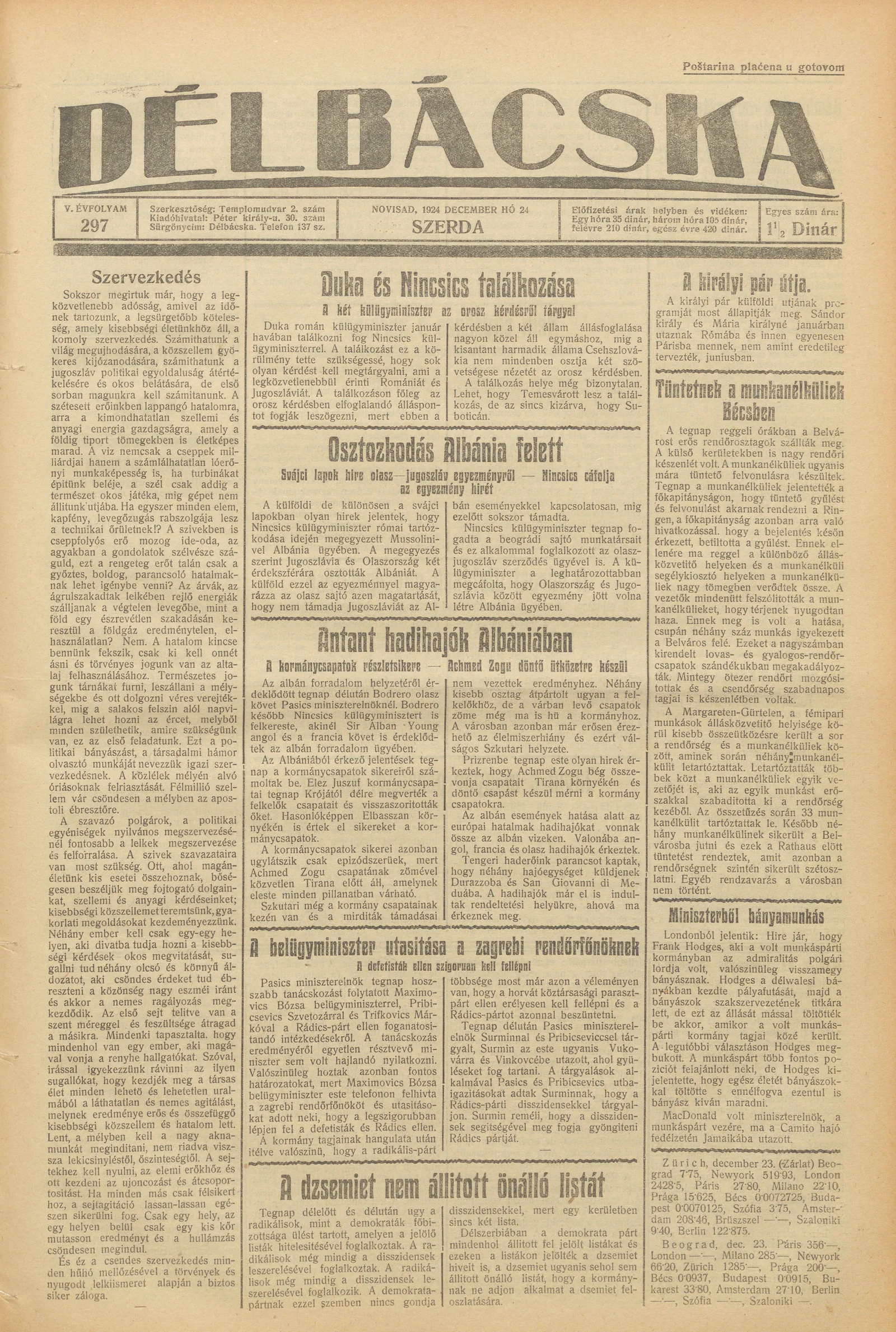 Délbácska, 5. évf. 1924. december 24. 297. sz.
