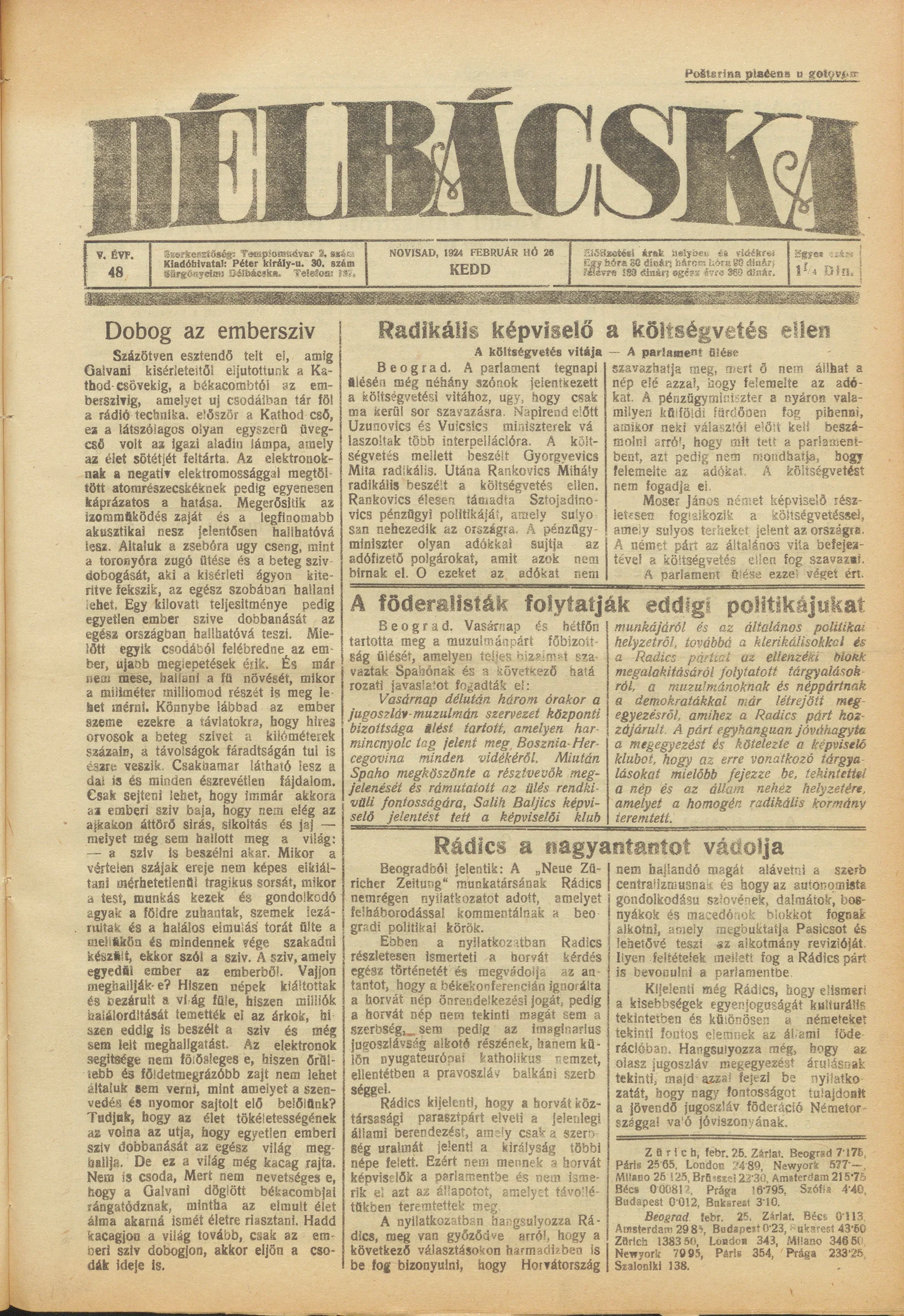 Délbácska, 5. évf. 1924. február 26. 48. sz.