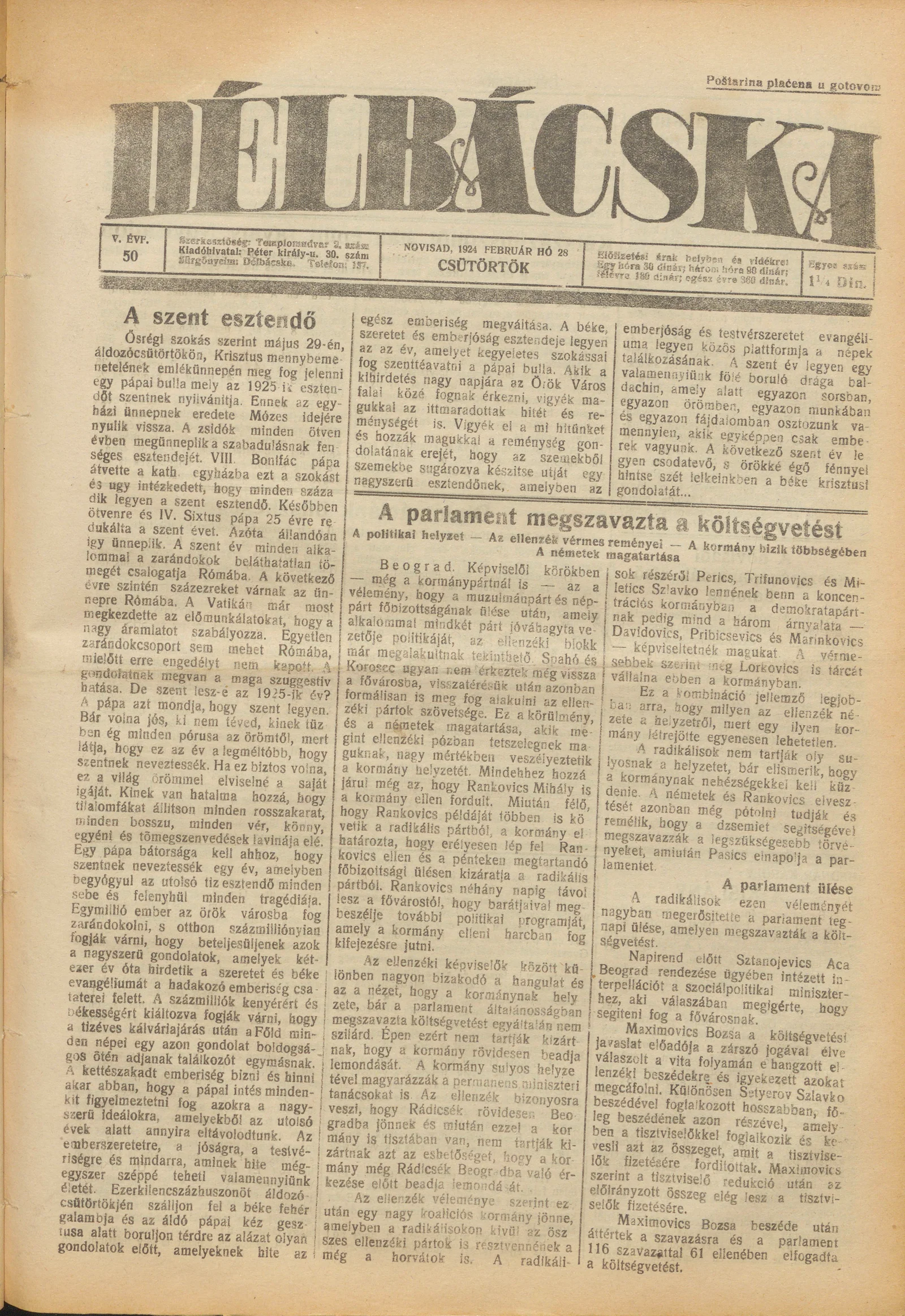 Délbácska, 5. évf. 1924. február 28. 50. sz.