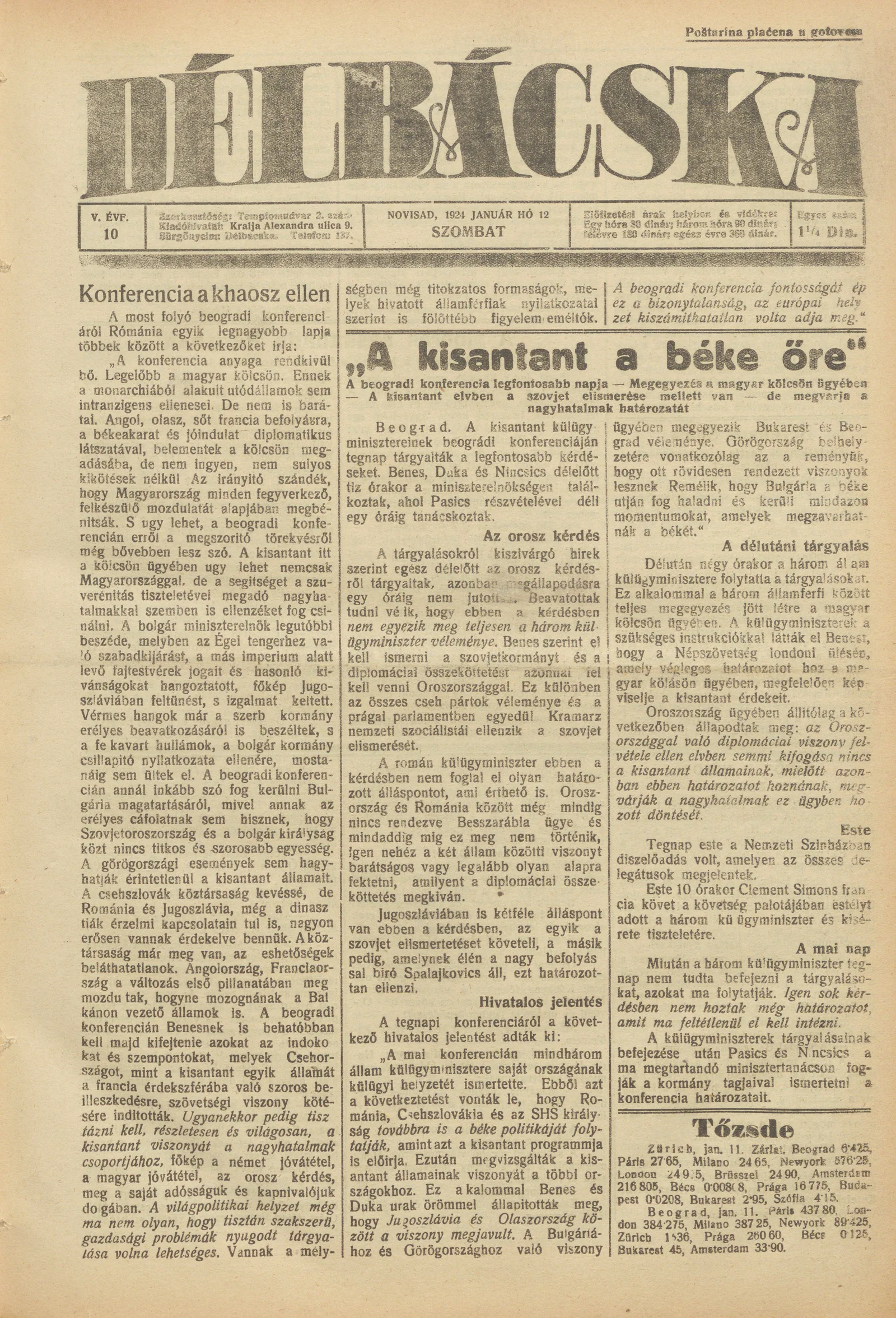Délbácska, 5. évf. 1924. január 12. 10. sz.