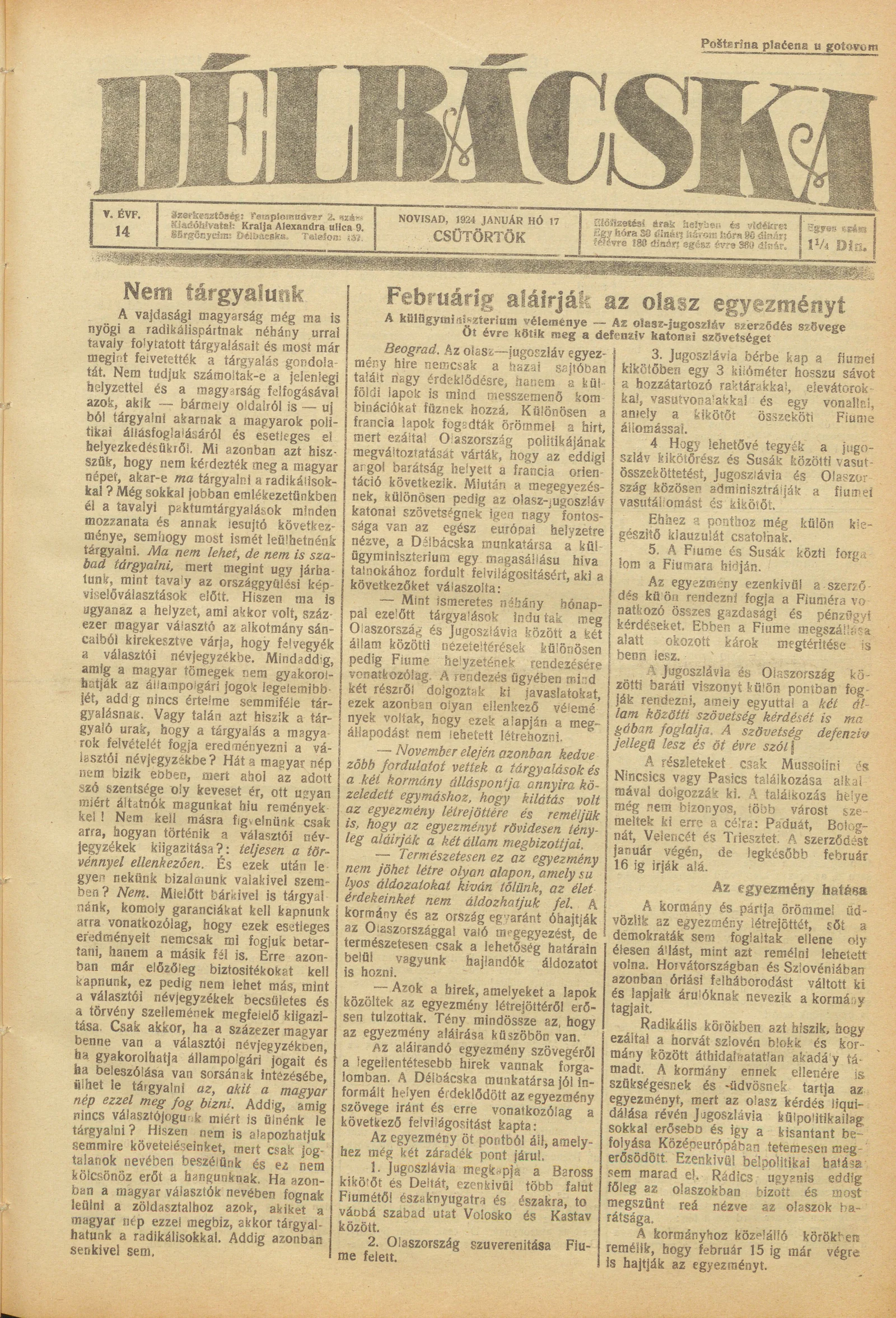 Délbácska, 5. évf. 1924. január 17. 14. sz.
