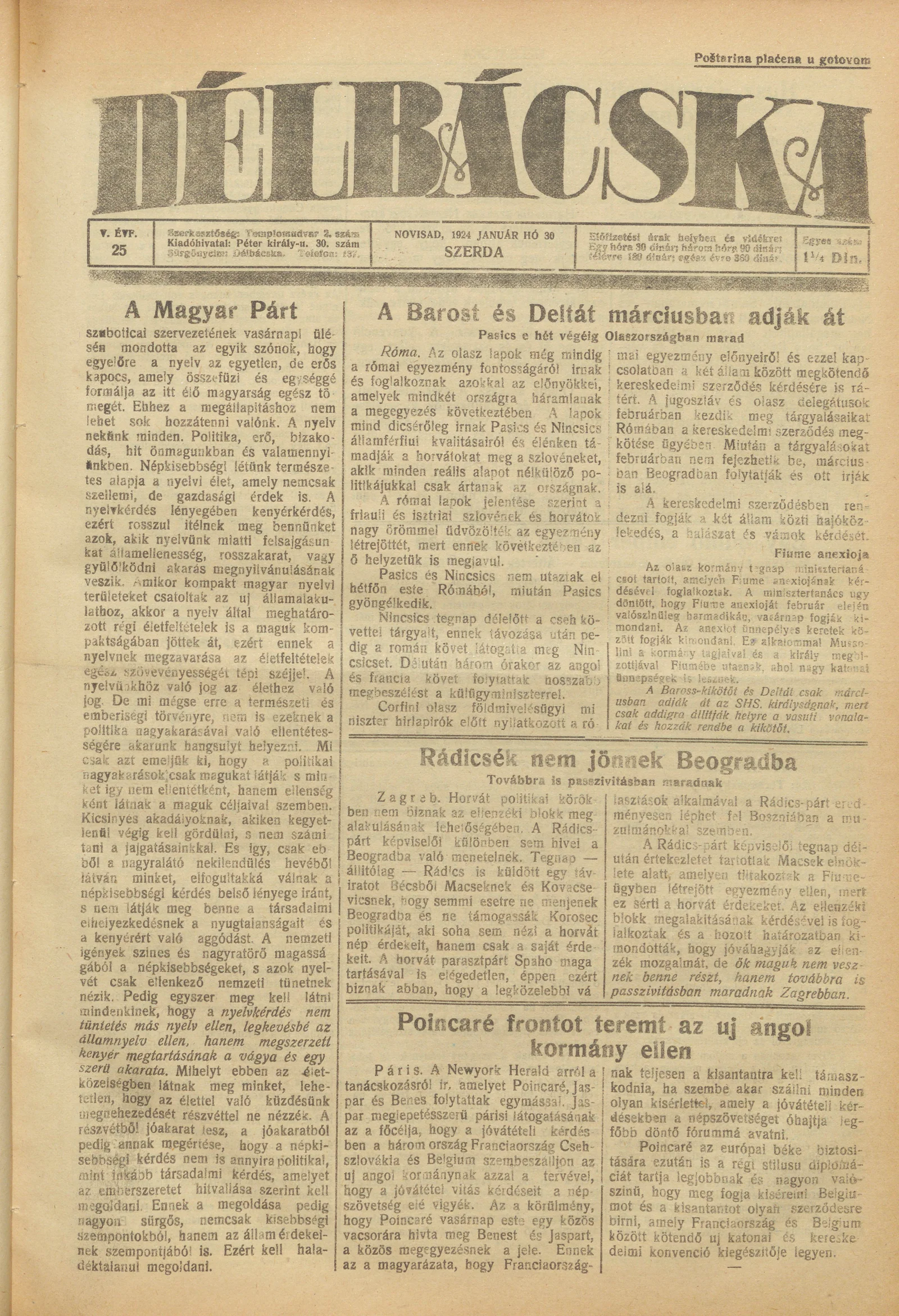 Délbácska, 5. évf. 1924. január 30. 25. sz.