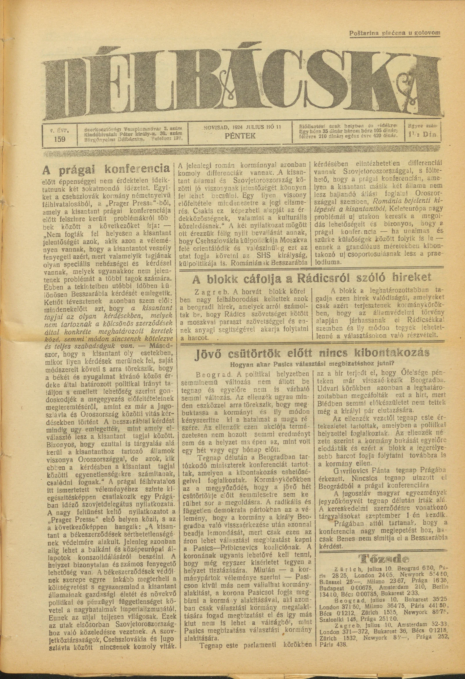 Délbácska, 5. évf. 1924. július 11. 159. sz.