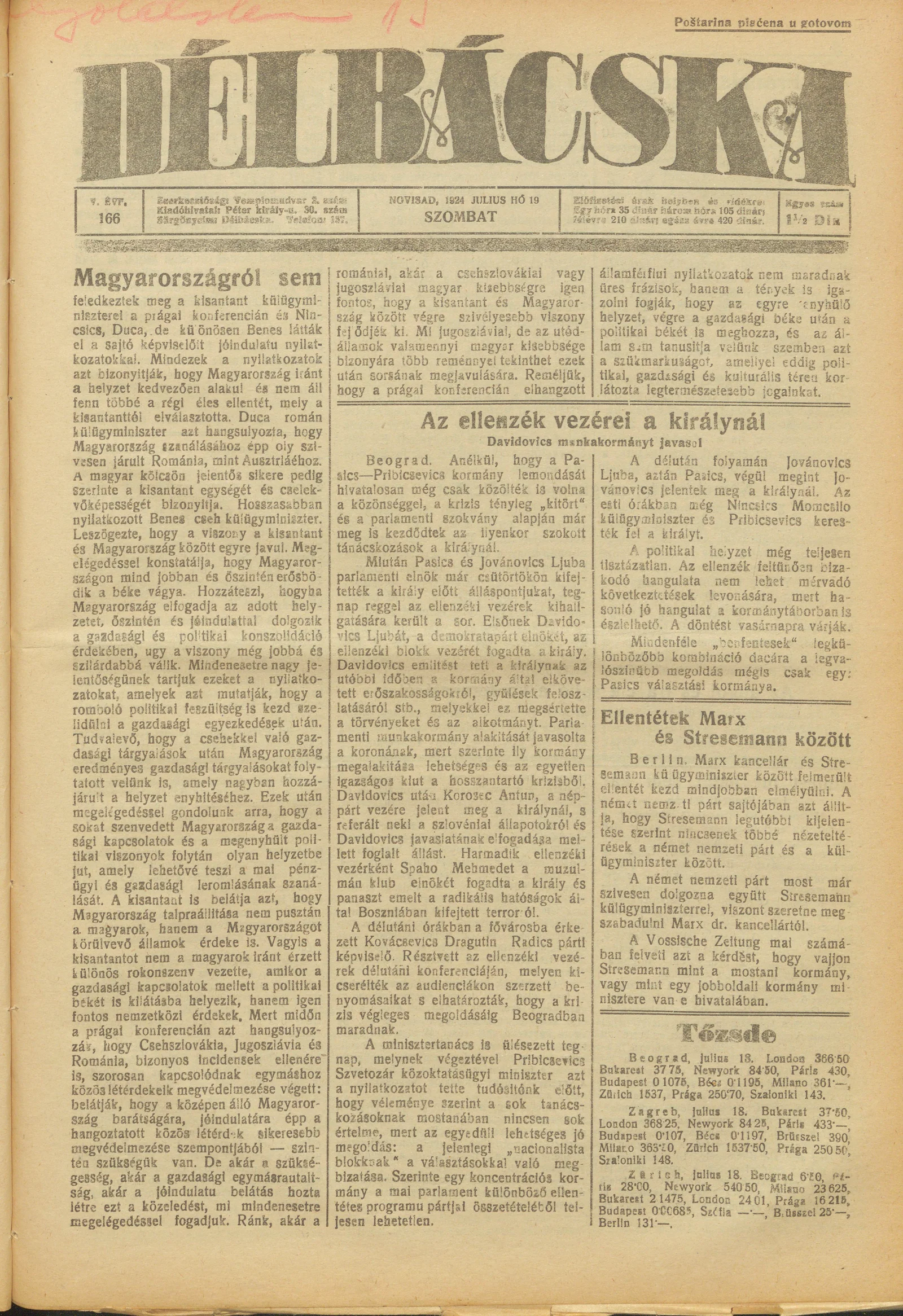 Délbácska, 5. évf. 1924. július 19. 166. sz.
