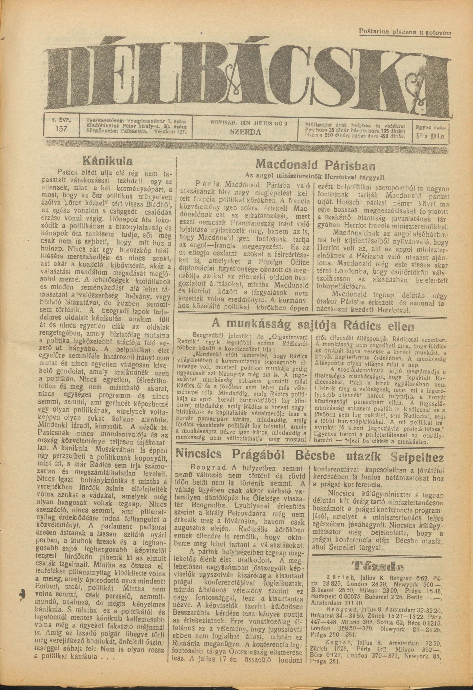 Délbácska, 5. évf. 1924. július 9. 157. sz.