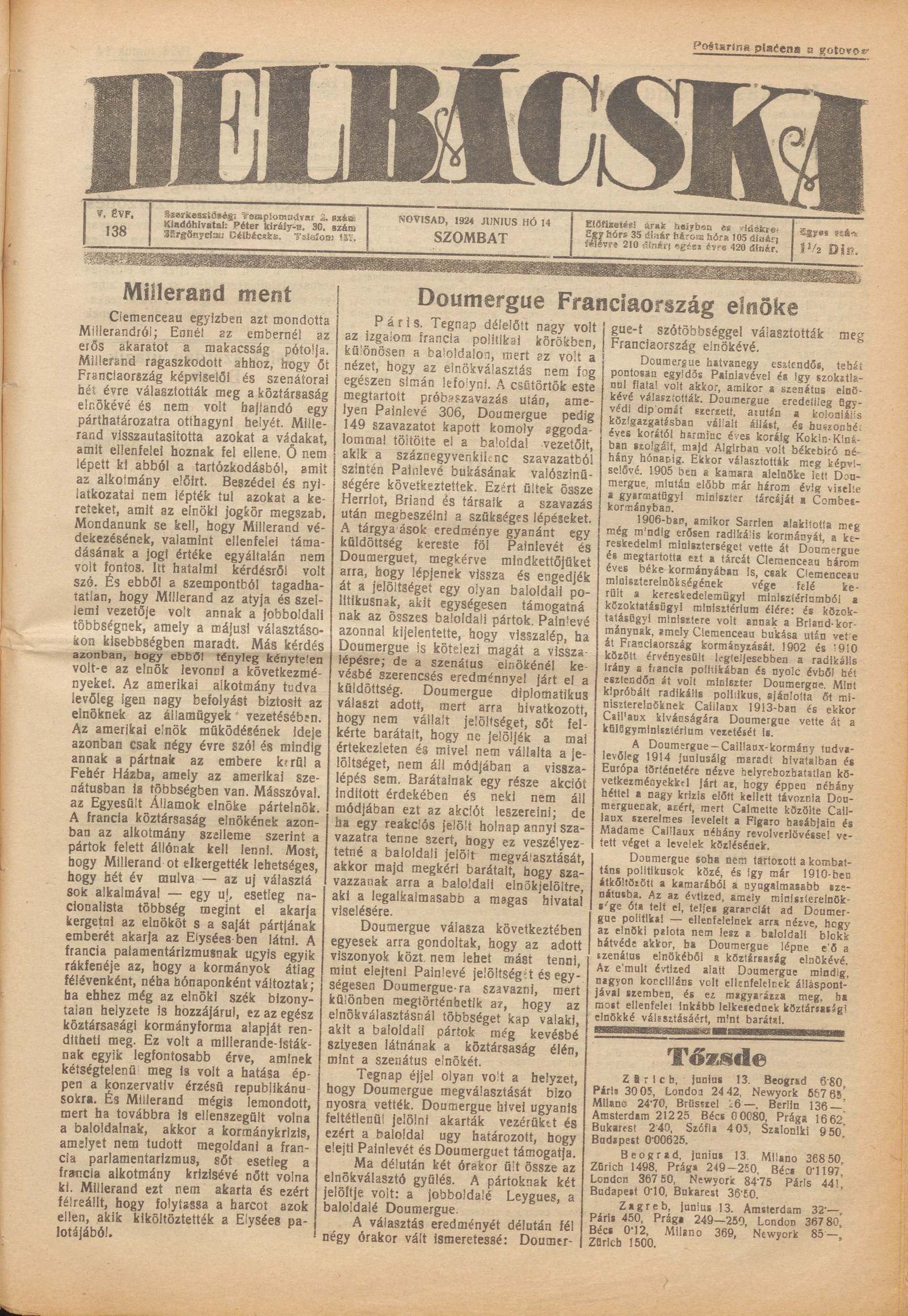 Délbácska, 5. évf. 1924. június 14. 138. sz.