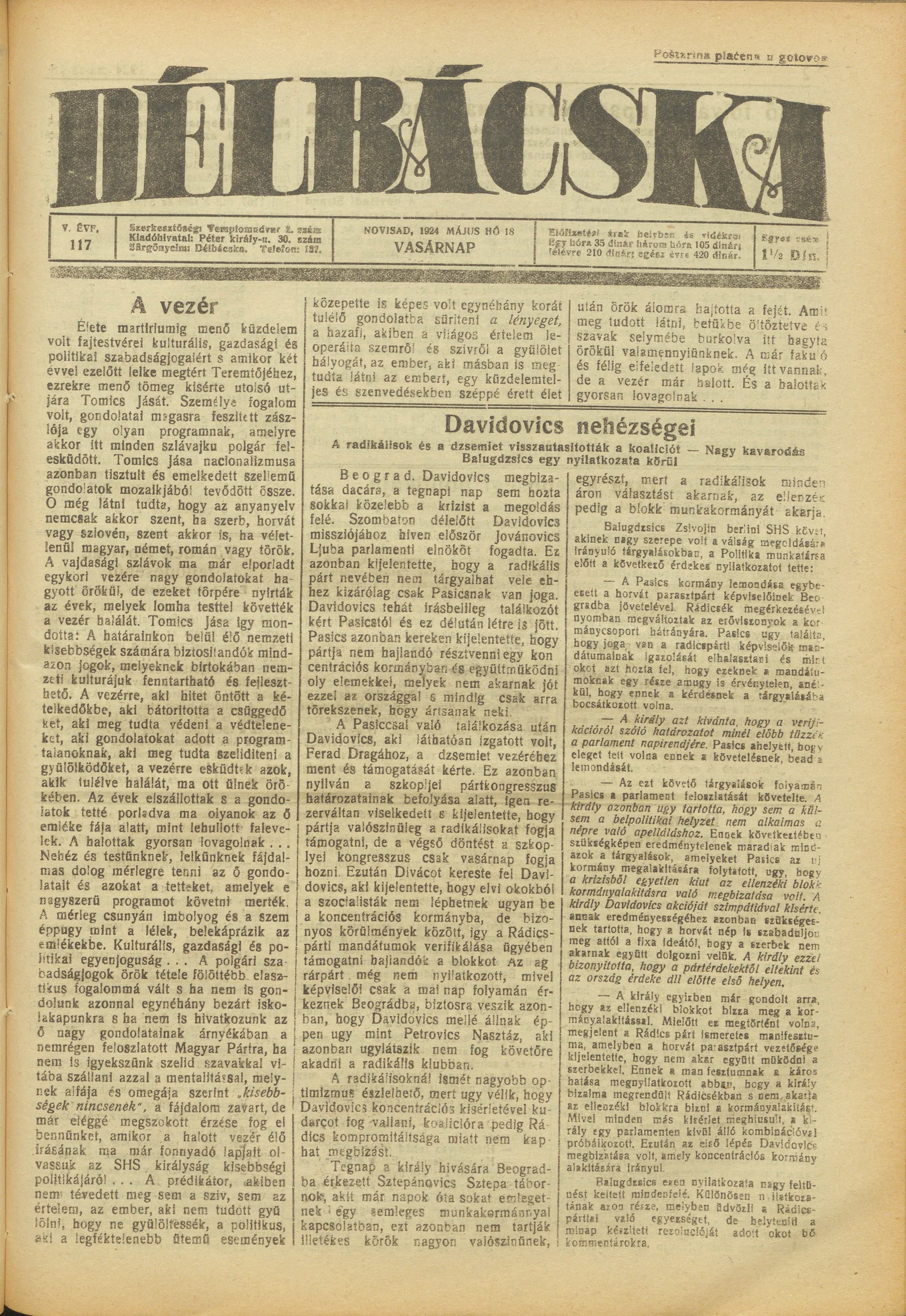 Délbácska, 5. évf. 1924. május 18. 117. sz.
