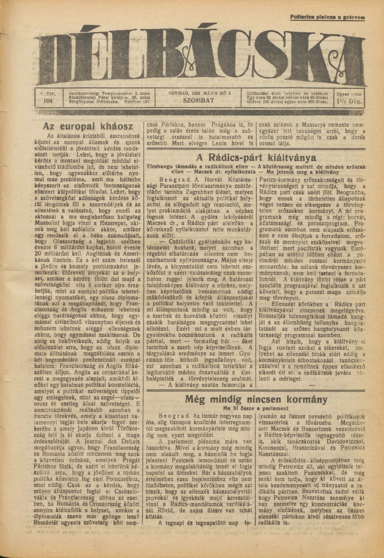 Délbácska, 5. évf. 1924. május 3. 104. sz.