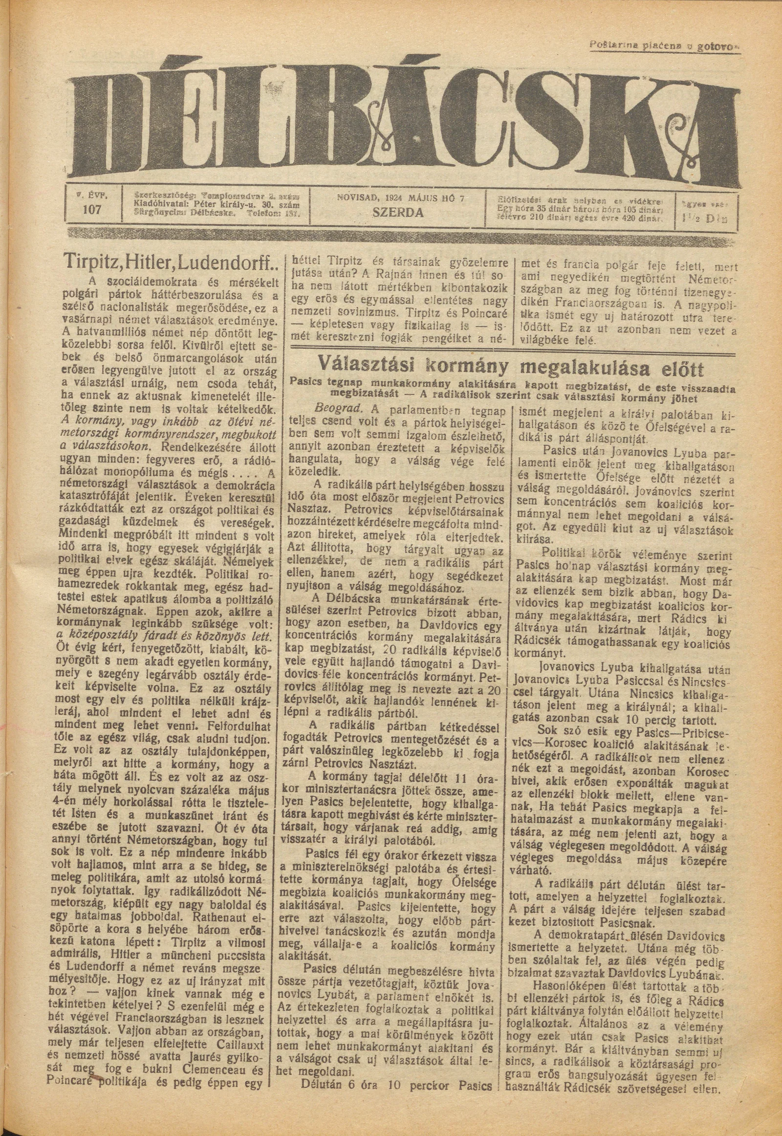 Délbácska, 5. évf. 1924. május 7. 107. sz.