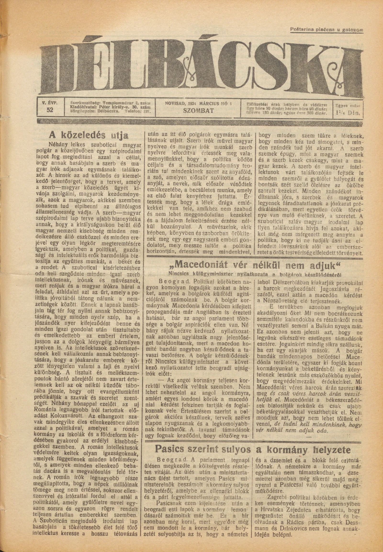 Délbácska, 5. évf. 1924. március 1. 52. sz.