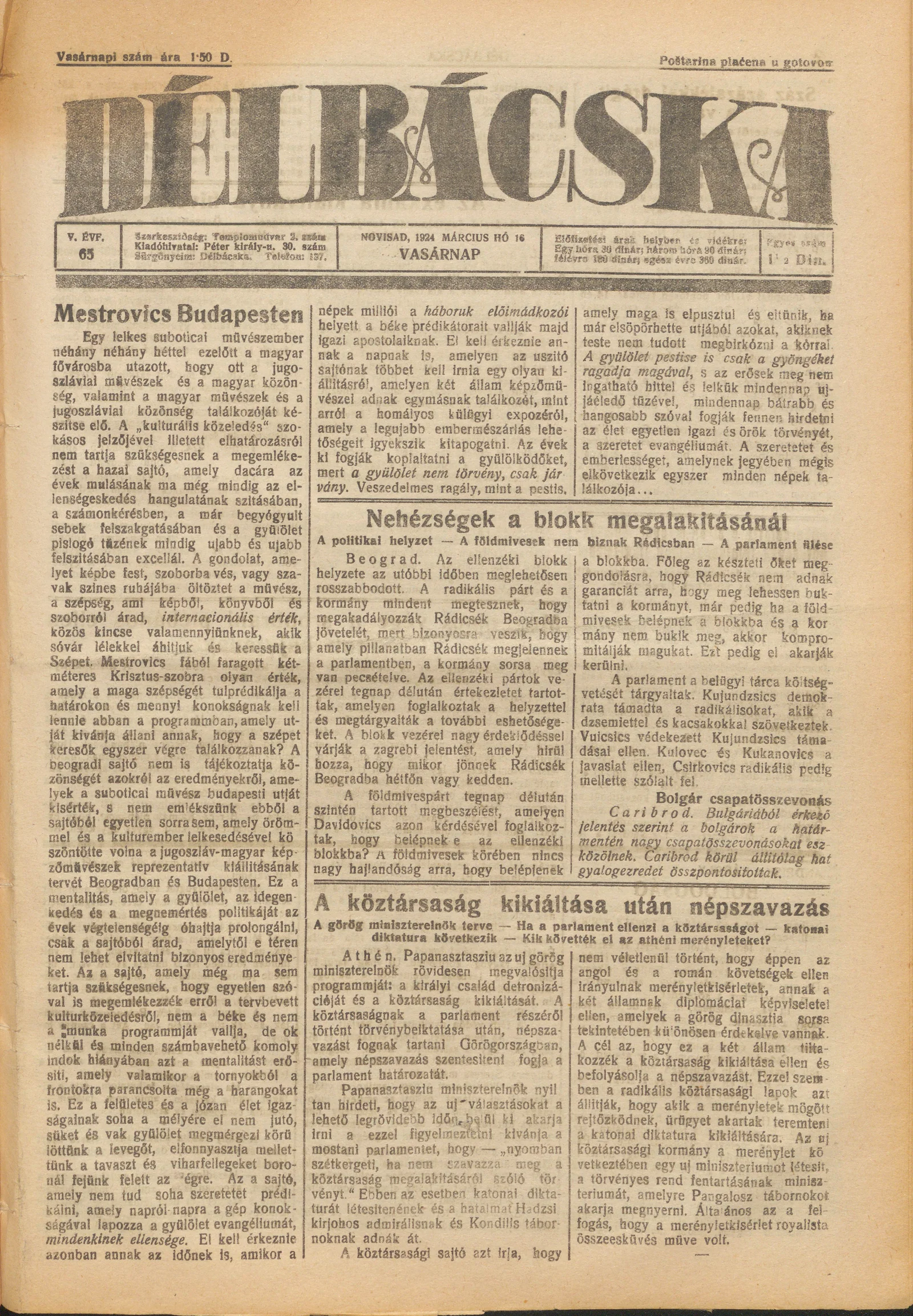Délbácska, 5. évf. 1924. március 16. 65. sz.