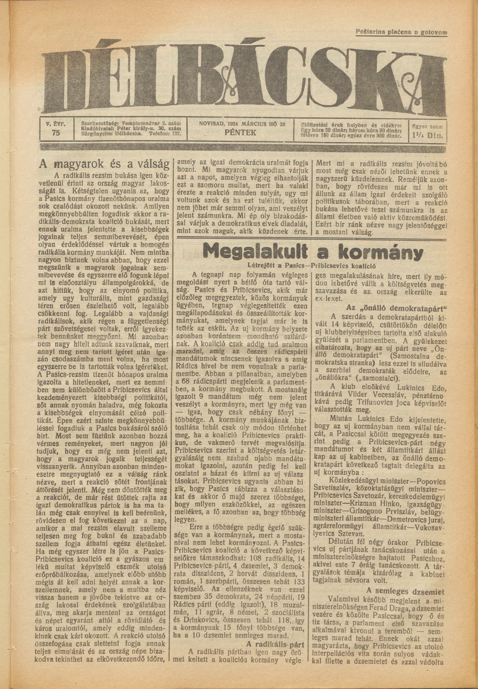 Délbácska, 5. évf. 1924. március 28. 75. sz.