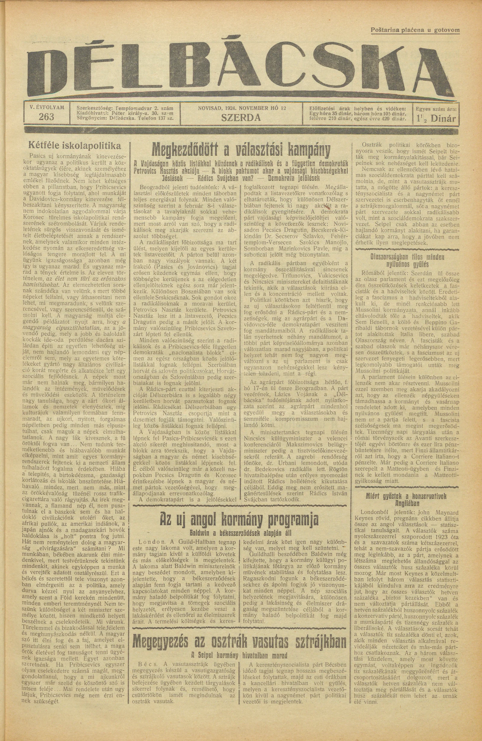 Délbácska, 5. évf. 1924. november 12. 263. sz.