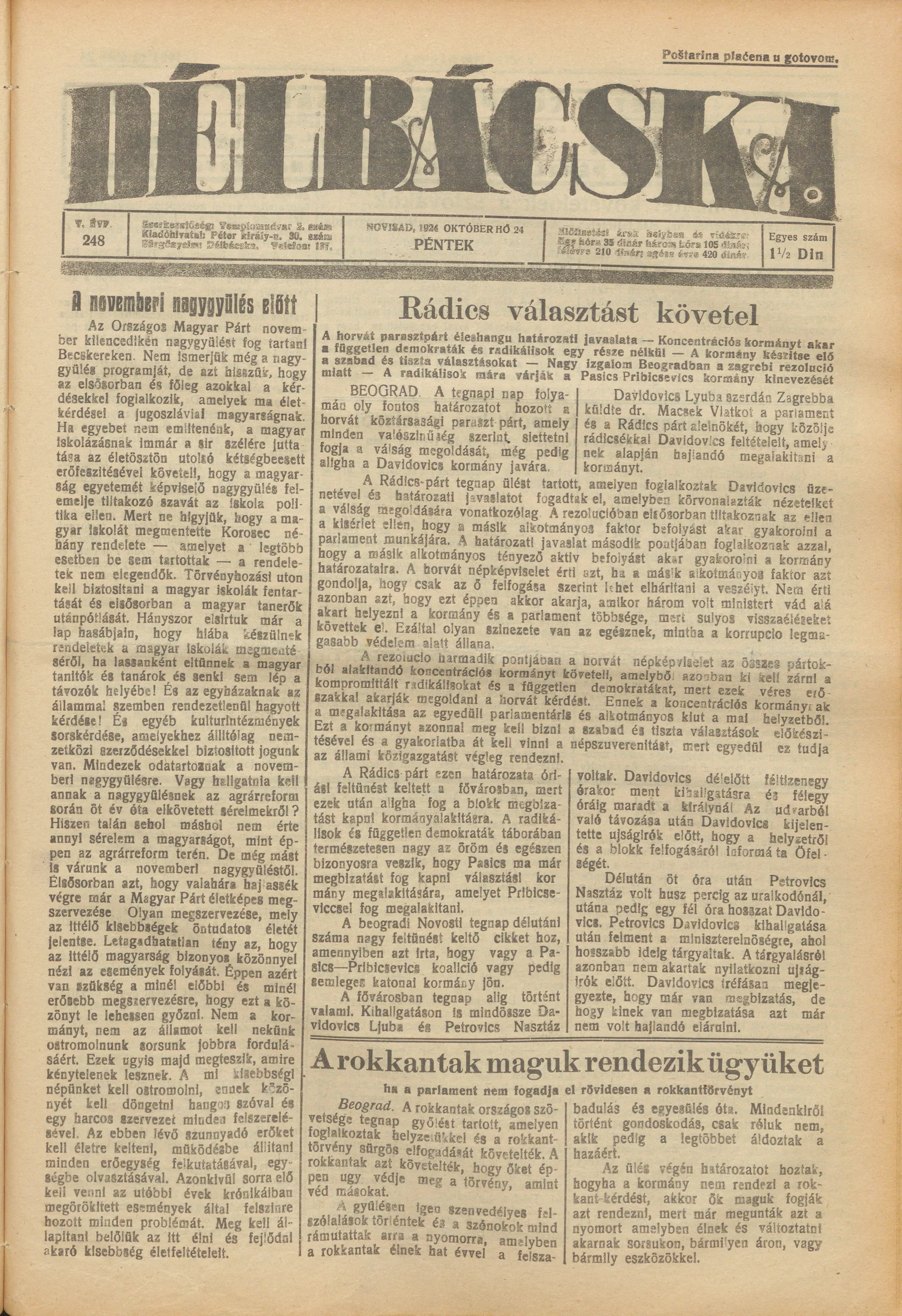 Délbácska, 5. évf. 1924. október 24. 248. sz.