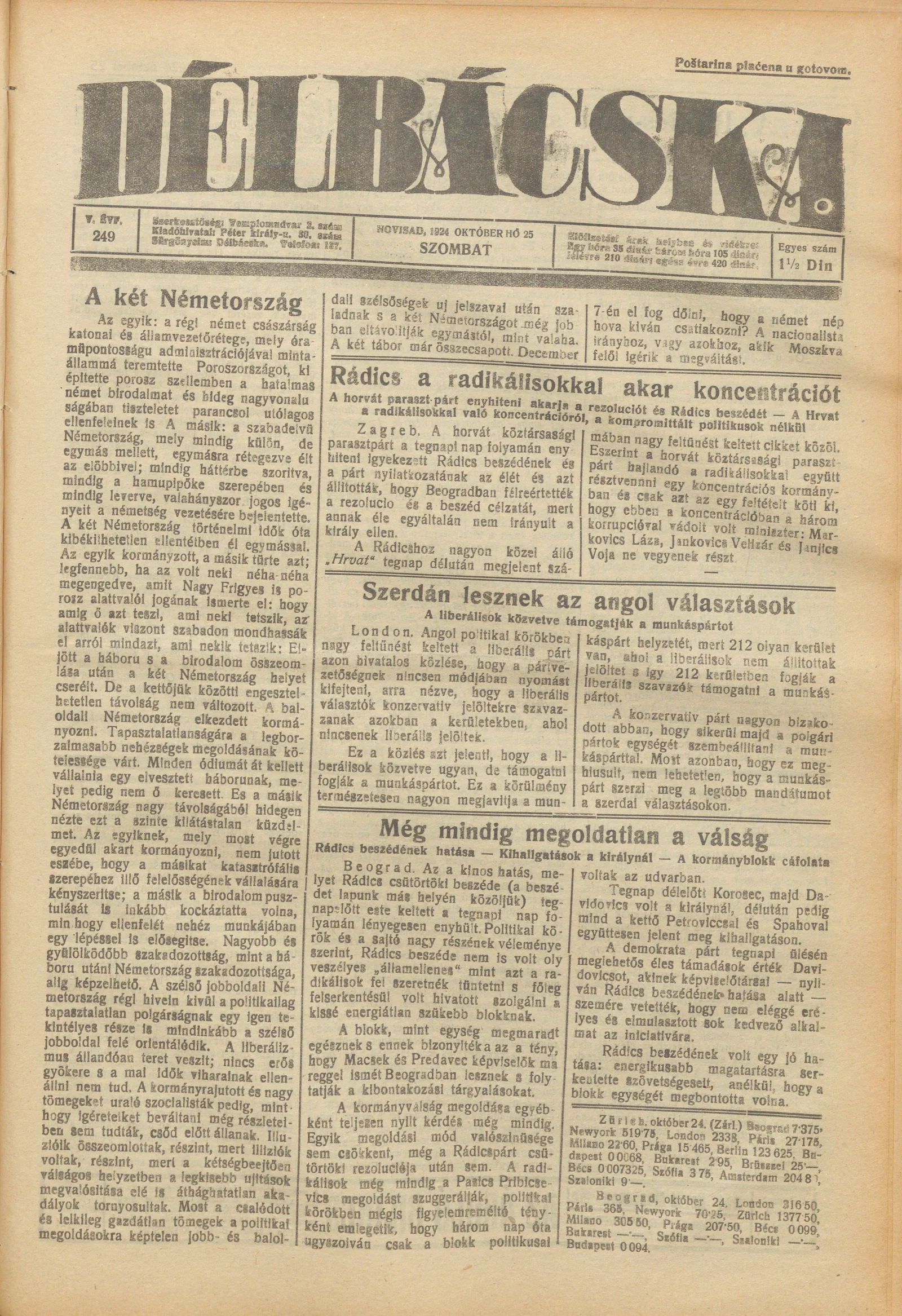 Délbácska, 5. évf. 1924. október 25. 249. sz.