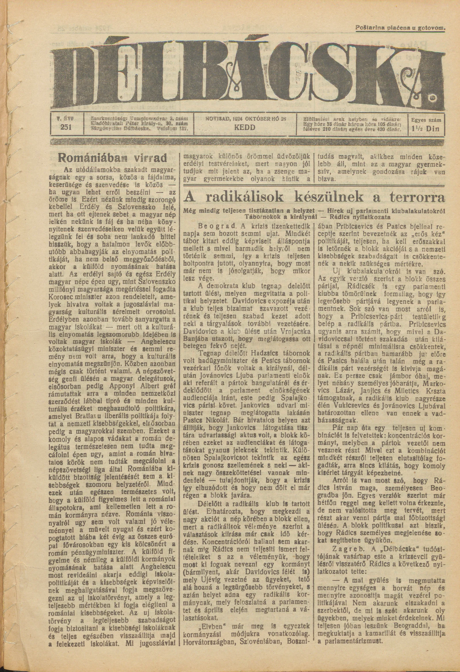 Délbácska, 5. évf. 1924. október 28. 251. sz.