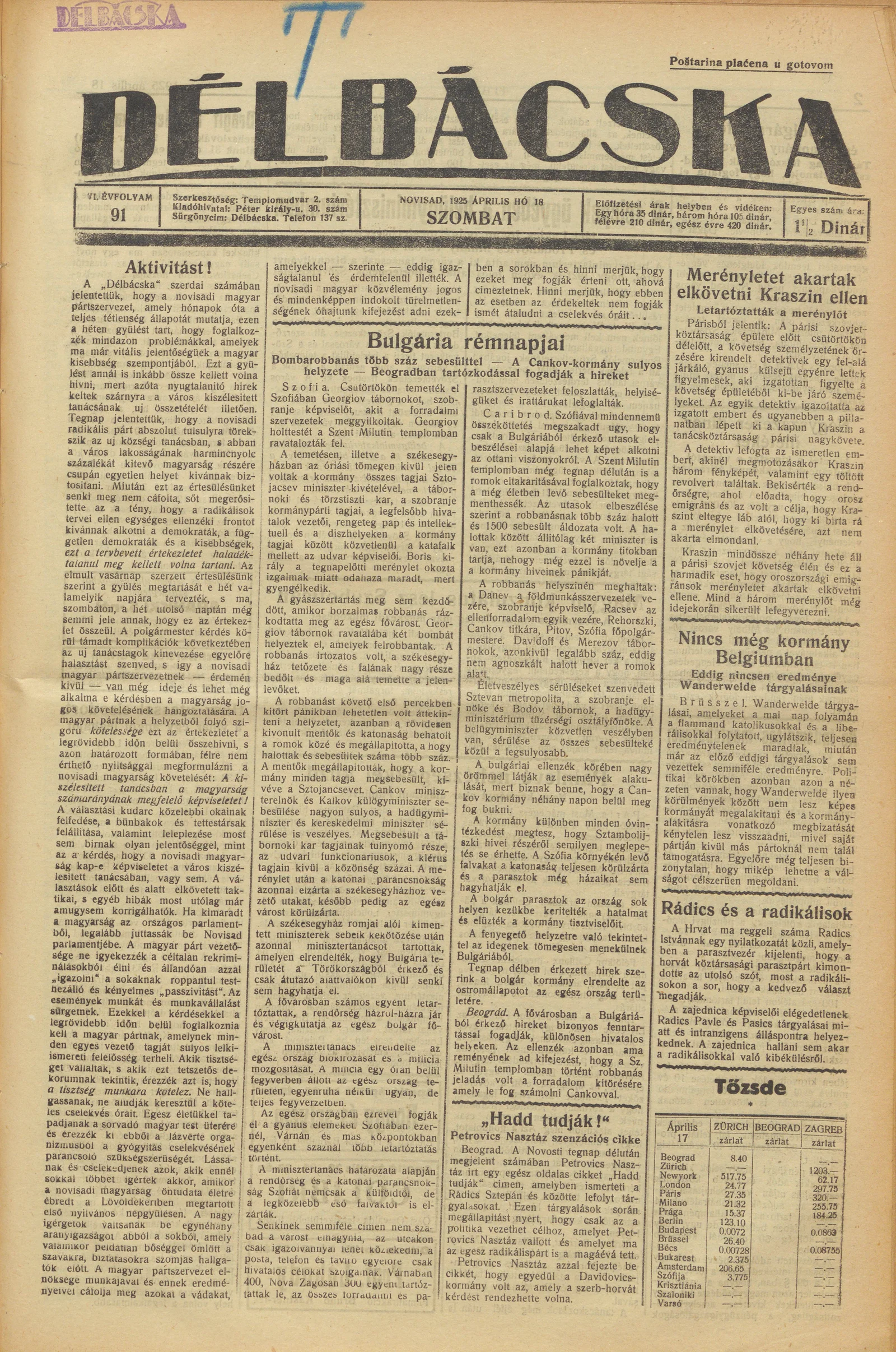 Délbácska, 6. évf. 1925. április 18. 91. sz.