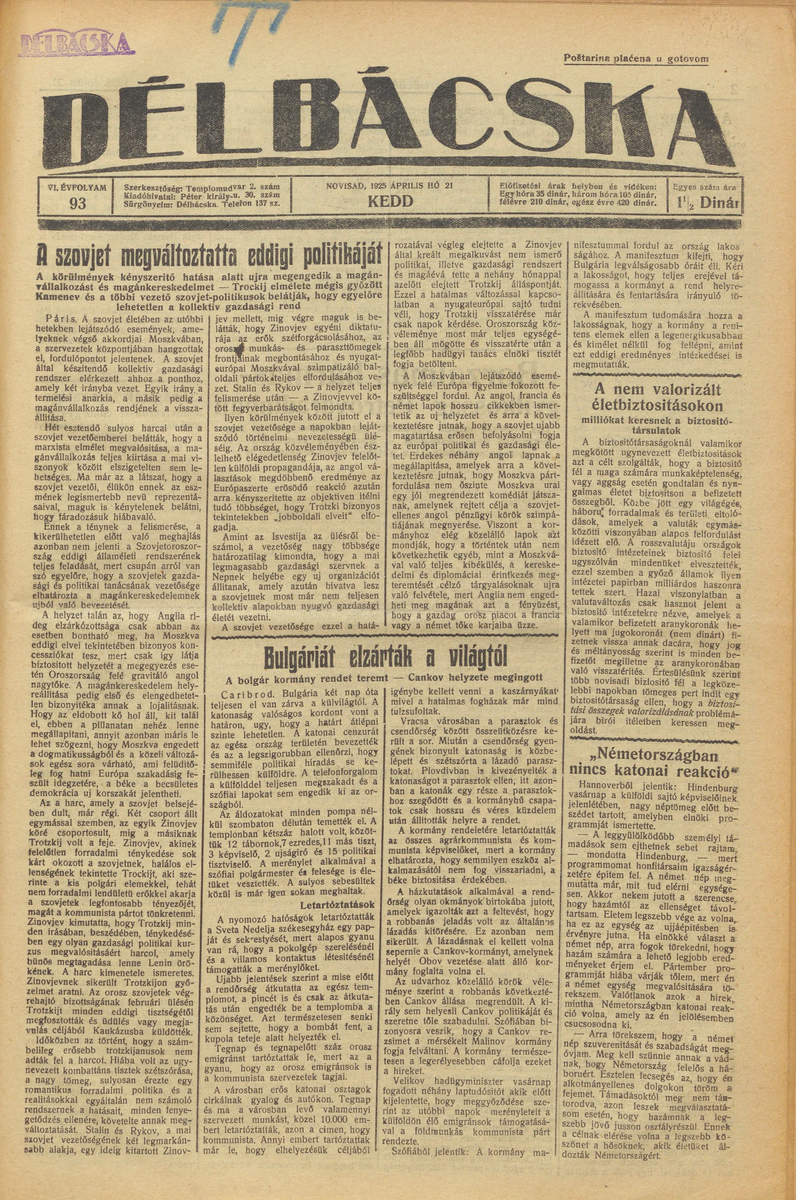 Délbácska, 6. évf. 1925. április 21. 93. sz.