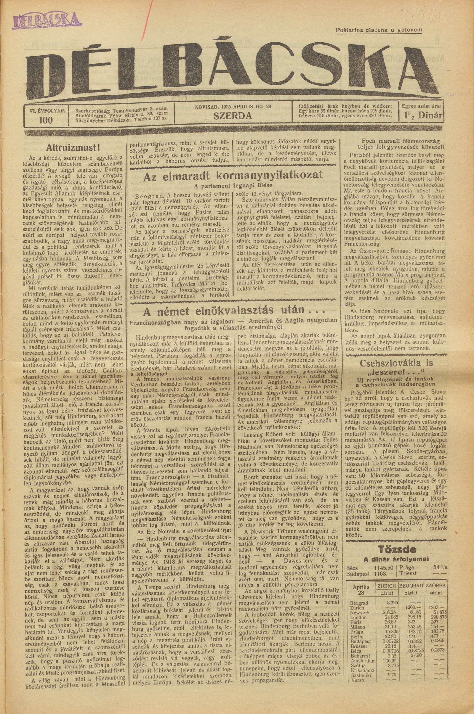 Délbácska, 6. évf. 1925. április 29. 100. sz.