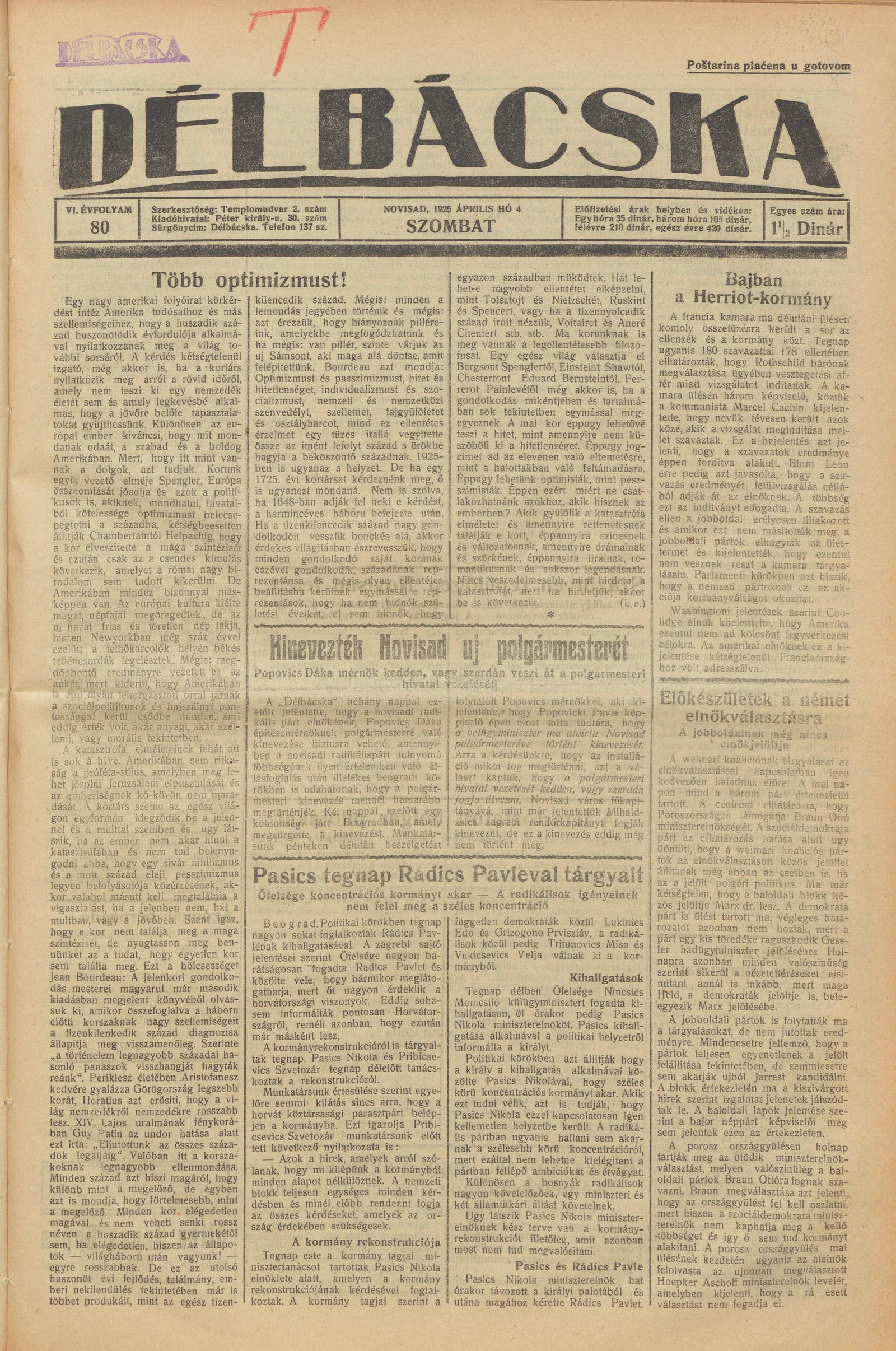 Délbácska, 6. évf. 1925. április 4. 80. sz.