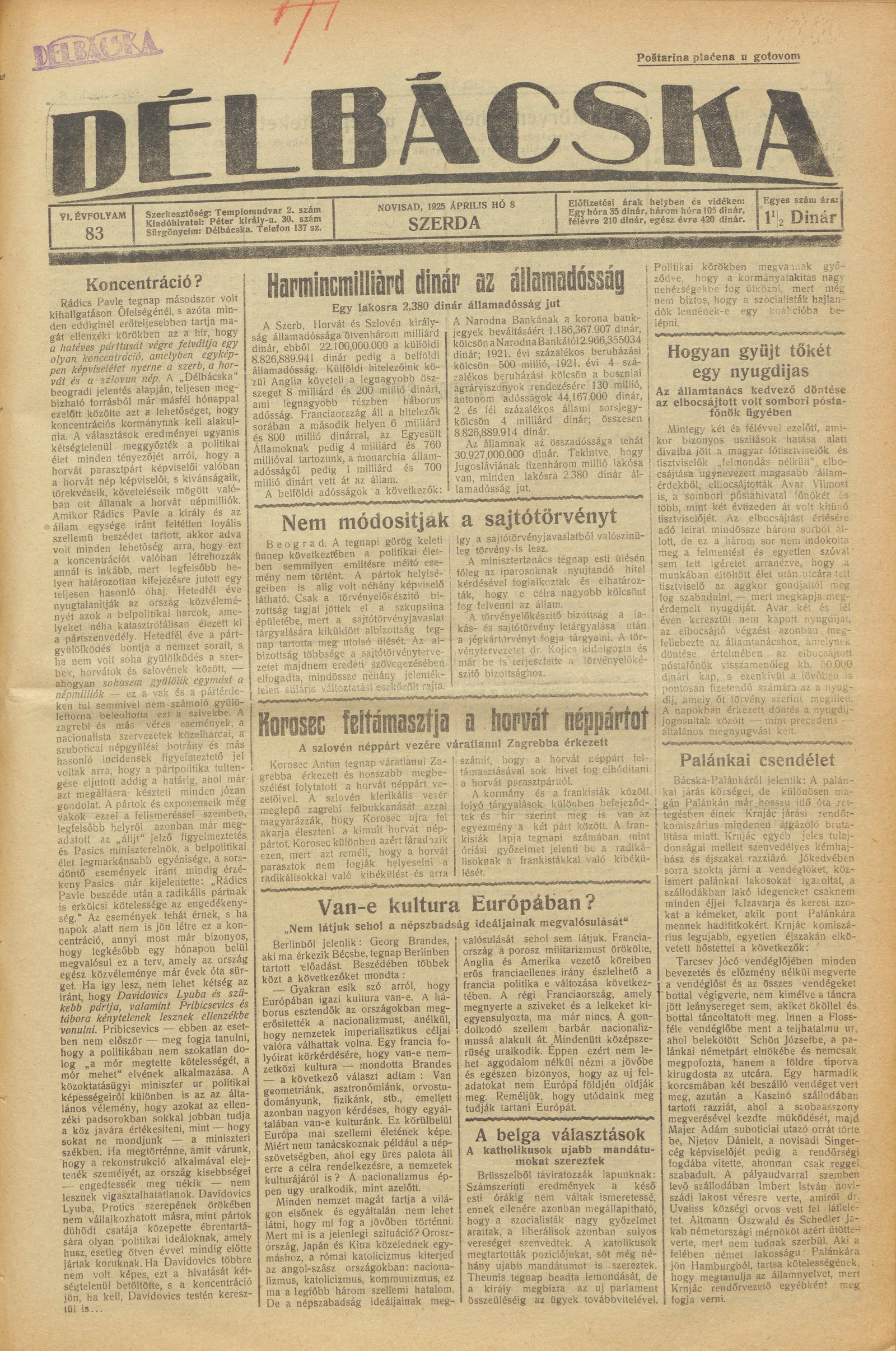 Délbácska, 6. évf. 1925. április 8. 83. sz.