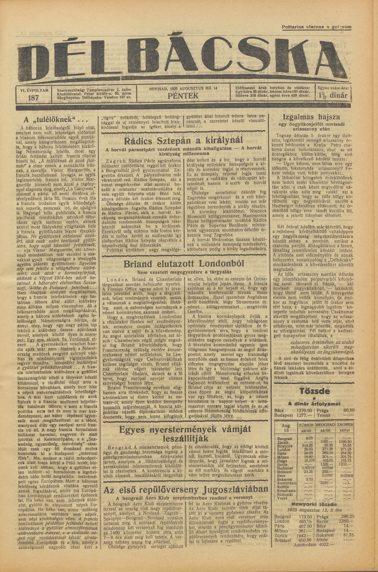 Délbácska, 6. évf. 1925. augusztus 14. 187. sz.