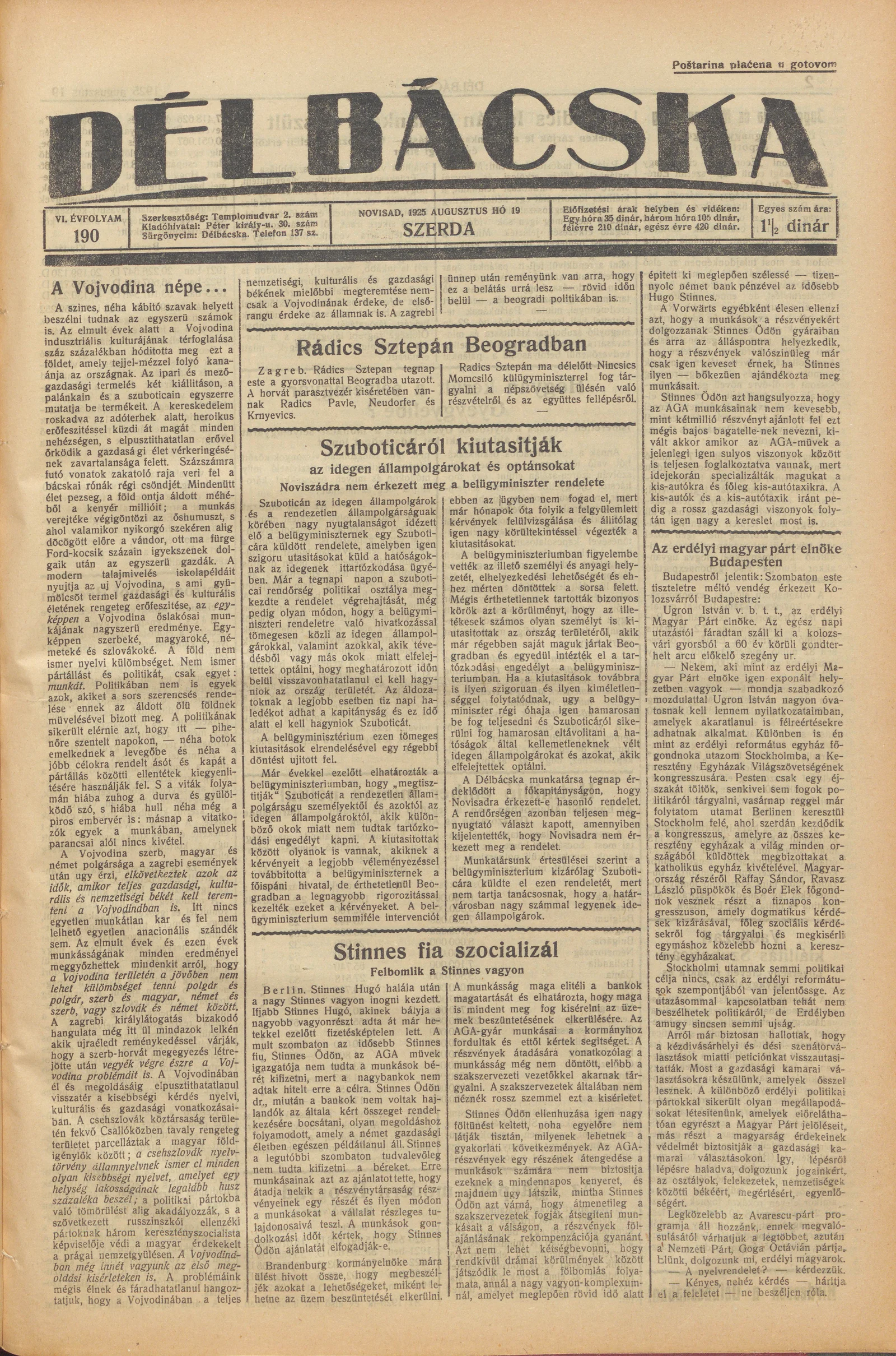 Délbácska, 6. évf. 1925. augusztus 19. 190. sz.