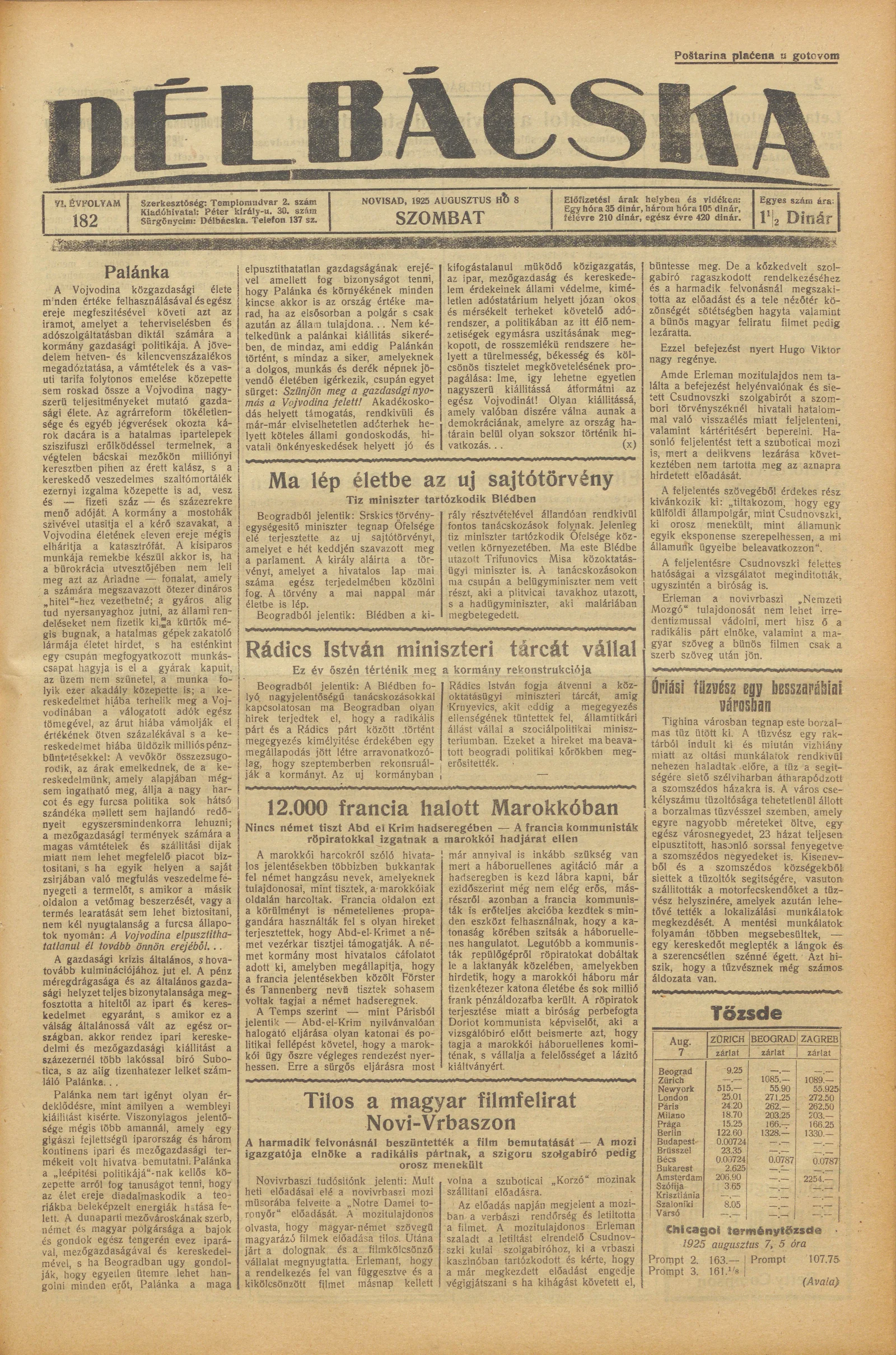 Délbácska, 6. évf. 1925. augusztus 8. 182. sz.