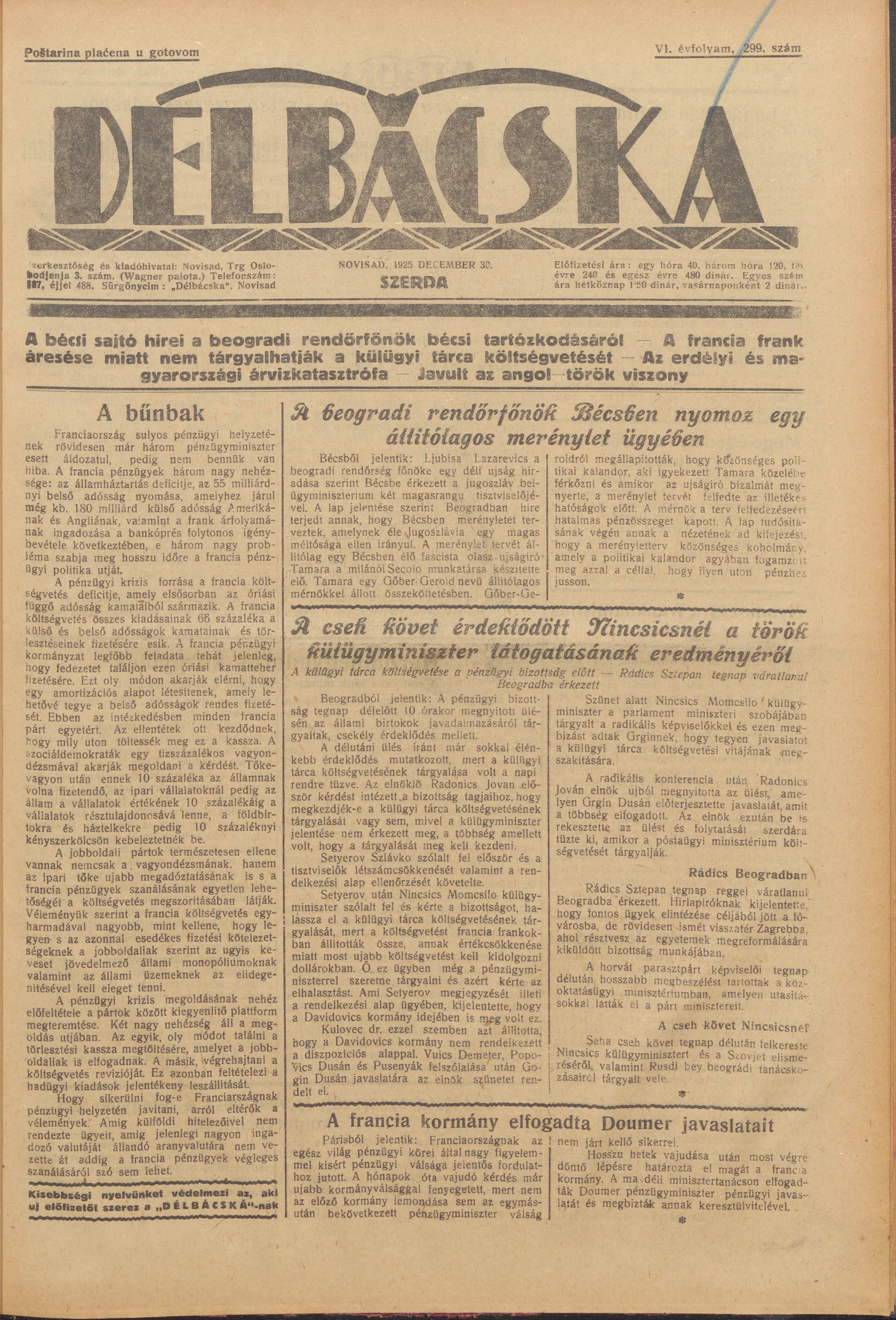 Délbácska, 6. évf. 1925. december 30. 299. sz.
